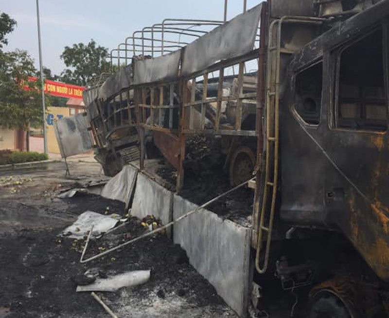 Dù được lực lượng chức năng hỗ trợ dập lửa, tuy nhiên do đám cháy lớn, chiếc xe đầu kéo đã bị cháy trơ trụi. Ngoài ra, trên thùng xe có 1 xe lu và 1 xe cẩu cũng bị hư hỏng.