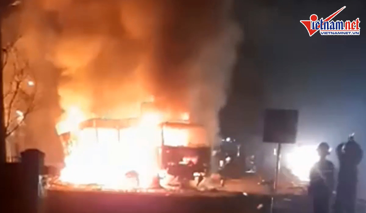 Đà Nẵng: 2 xe giường nằm bốc cháy dữ dội, kèm nổ lớn trong bến