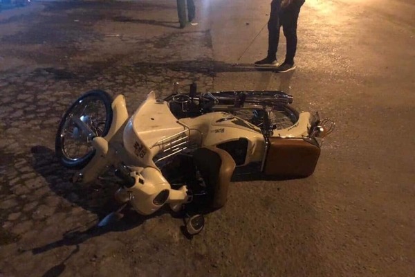 | Xe máy của tài xế xe ôm bị nát vụn. Ảnh: Hằng T.X |