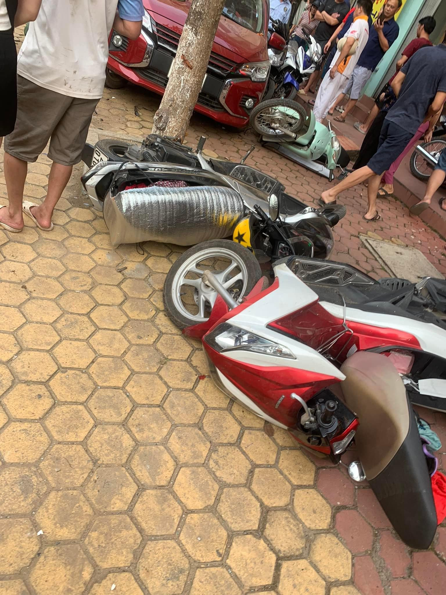 Tại thời điểm này, chiếc xe 7 chỗ hiệu Hyundai Tucson mang BKS 28A 111.86 chạy rất nhanh và gần như bị mất lái. Hậu quả, chiếc xe hiệu Mitsubishi Attrage mang BKS 28A 117.16 đi phía trước, gặp "oan gia", sau cú tông đã văng và đâm mạnh vào cột điện, vỡ nát thân xe. 5 chiếc xe máy bên đường bị hư hỏng. Xe 7 chỗ lật phơi bụng.