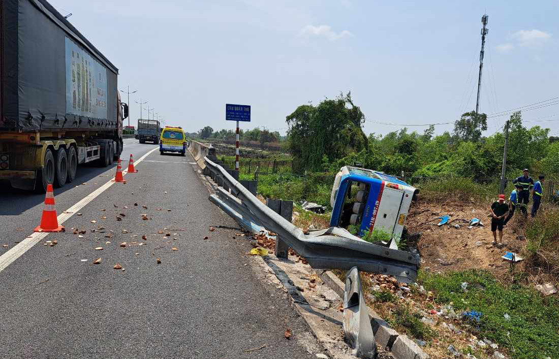 Vụ tai nạn giao thông xảy ra vào khoảng 11h30 sáng 9/3 trên cao tốc TP.HCM – Trung Lương (đoạn qua xã Tân Lý Đông, huyện Châu Thành, tỉnh Tiền Giang). Thời điểm trên, xe khách 29 chỗ biển kiểm soát tỉnh Bến Tre chở khoảng 20 hành khách lao sang phải, đâm vào hộ lan tôn sóng, rồi lao xuống taluy đường.