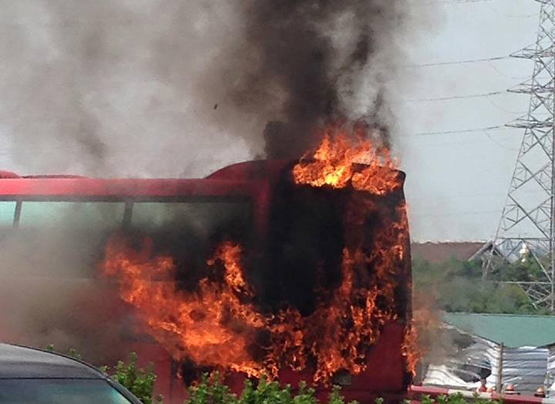 Xe khách cháy đùng đùng trên cao tốc Pháp Vân