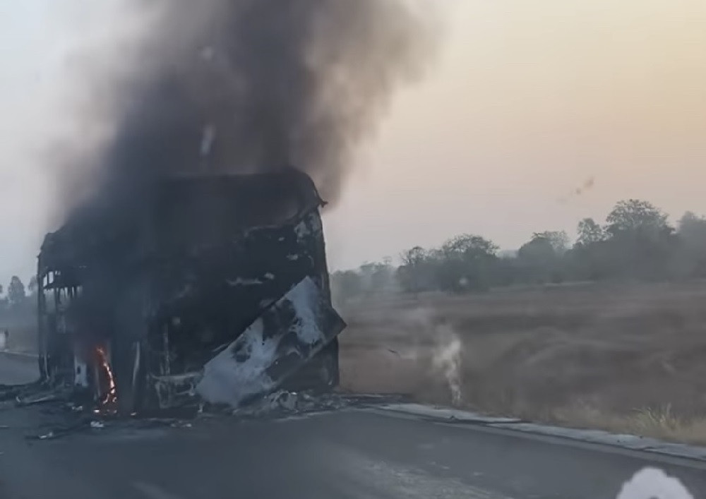 Vụ cháy xe giường nằm xảy ra vào sáng nay (19/2), trên cao tốc Vĩnh Hảo - Phan Thiết, đoạn qua xã Hồng Liêm, huyện Hàm Thuận Bắc, tỉnh Bình Thuận.