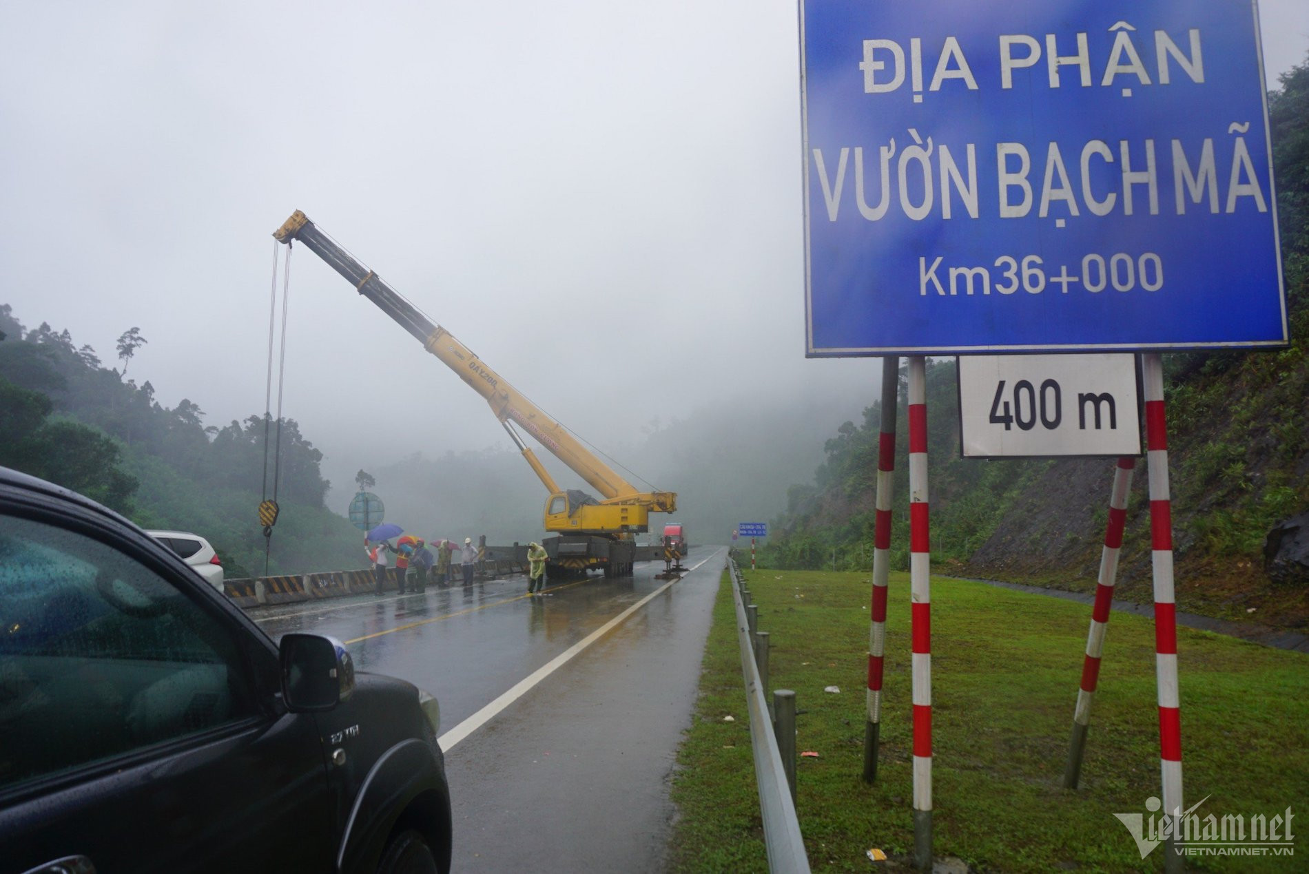 Xe khách tiếp tục đâm vào phần taluy rồi rơi xuống một con suối. Thời điểm xảy ra tai nạn trên tuyến cao tốc đang có mưa lớn.