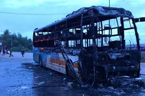 Đang trên đường di chuyển về bến xe, xe giường nằm chạy tuyến Quảng Ngãi - Bình Phước bất ngờ bốc cháy dữ dội.