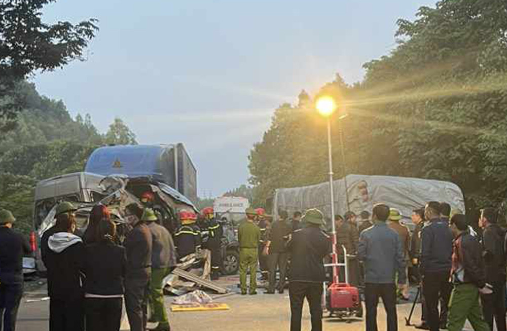 Theo đó, khoảng 2h10 cùng ngày, xe khách loại 16 chỗ mang BKS 14B-036.XX đang lưu thông trên Quốc lộ 1A thì bất ngờ va chạm với ô tô đầu kéo mang BKS 98C-016.XX kéo theo rơ-moóc biển số 98R-013.XX đang đỗ cùng chiều phía trước.