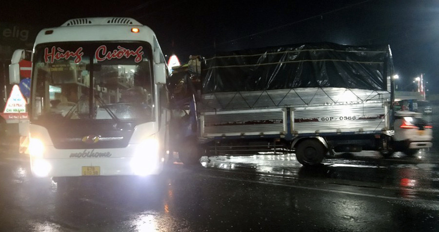 Cú va chạm khiến tài xế xe tải bị thương phải nhập viện cấp cứu; nhiều hành khách đi trên xe giường nằm cũng hoảng hốt.
