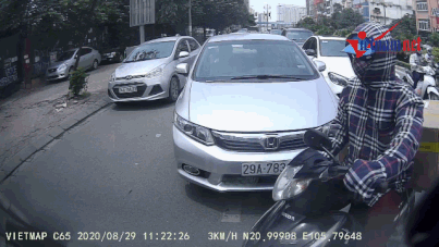 Hà Nội, xe máy đi ẩu, tạt đầu ô tô suýt gây tai nạn