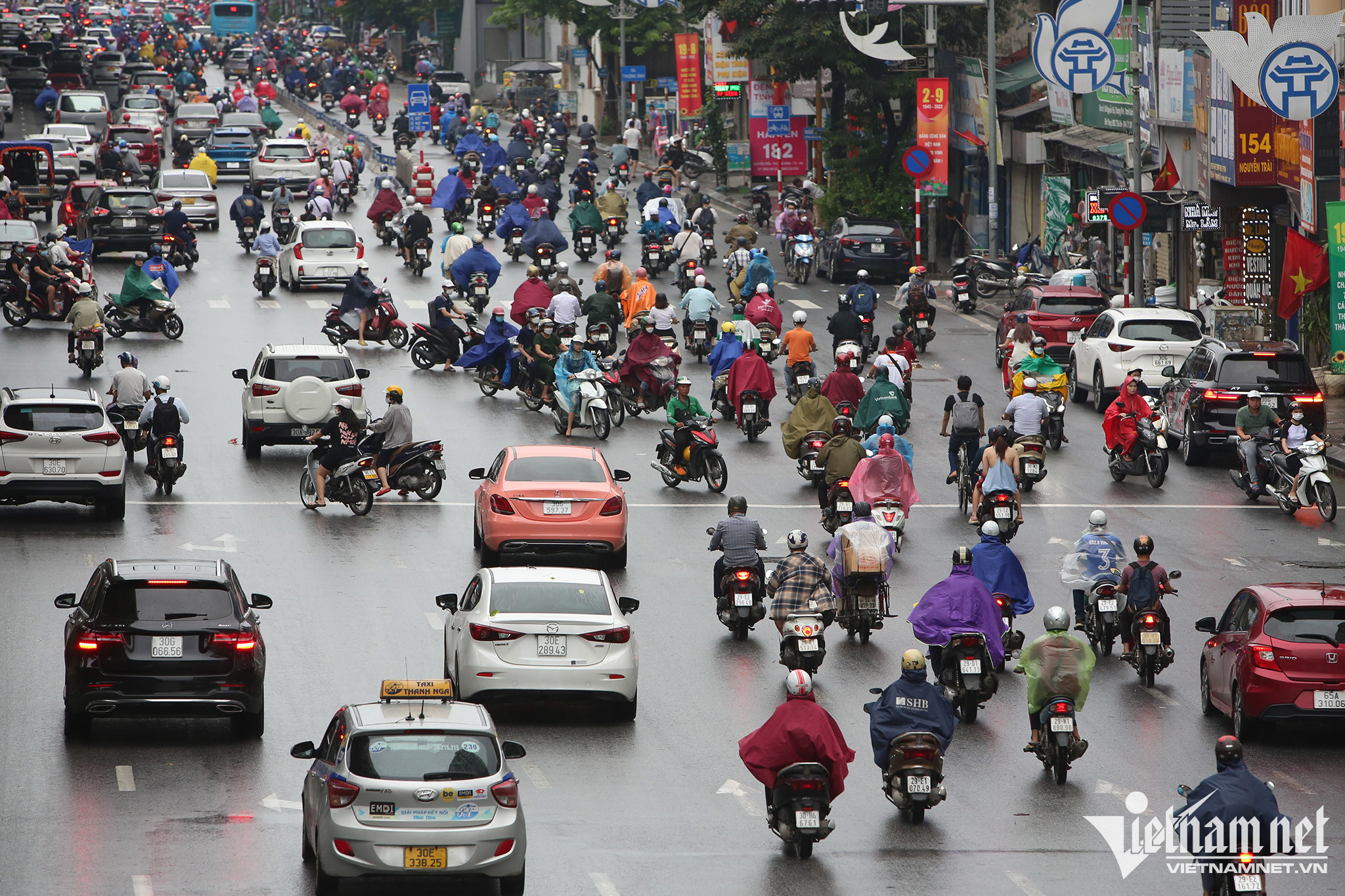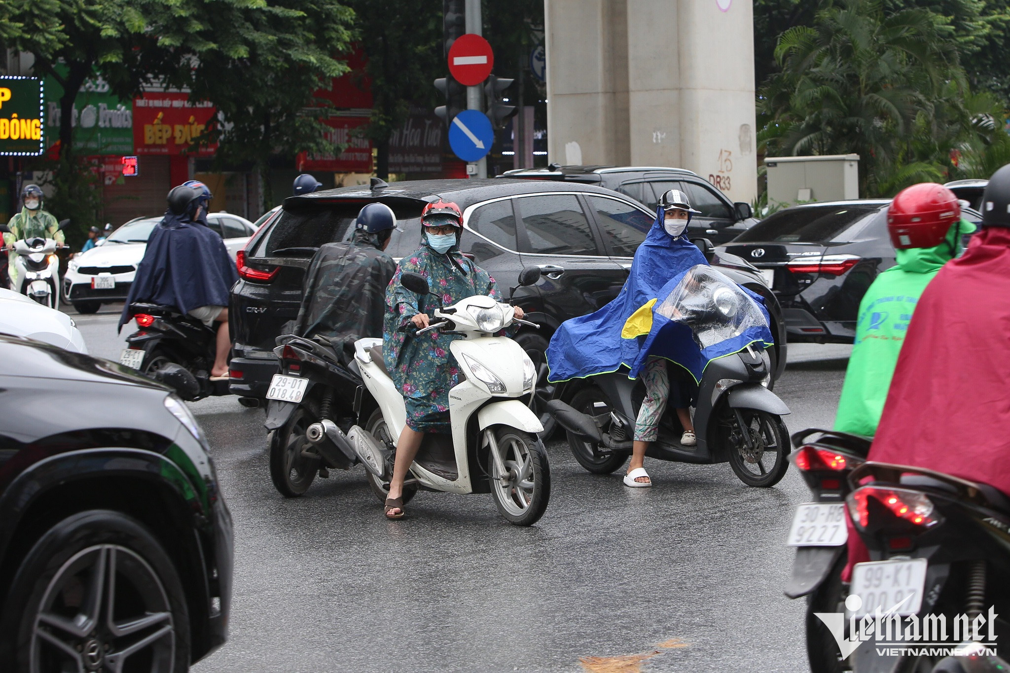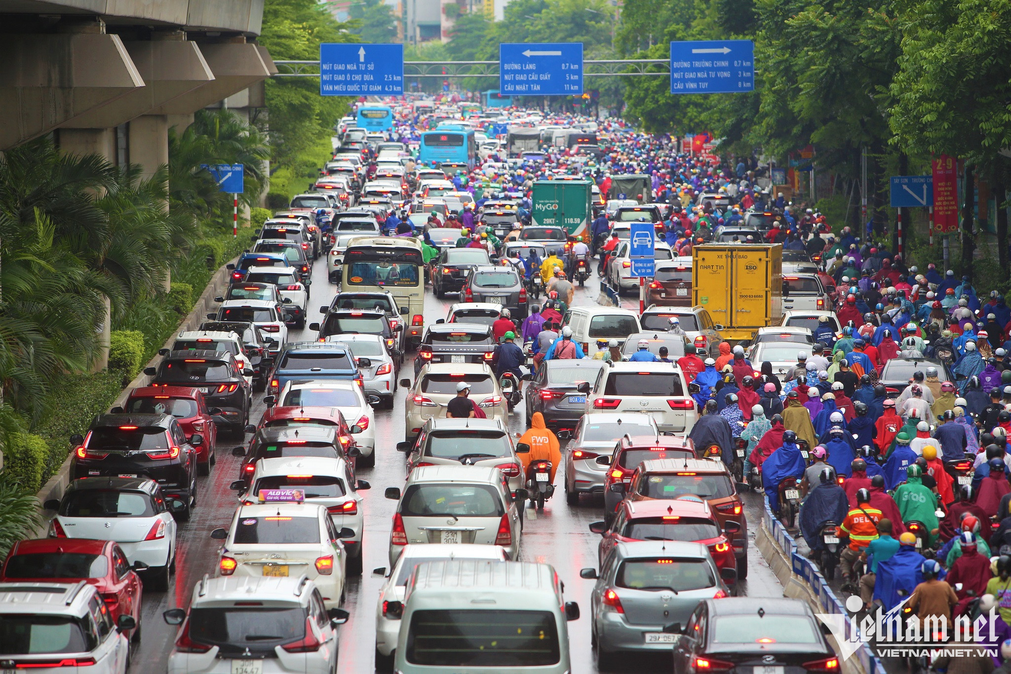 Sáng 26/8, do ảnh hưởng của cơn bão số 3, Hà Nội có mưa rải rác khiến đường Nguyễn Trãi (đoạn qua số nhà 160) bị ùn tắc kéo dài đến cầu vượt Ngã Tư Sở.