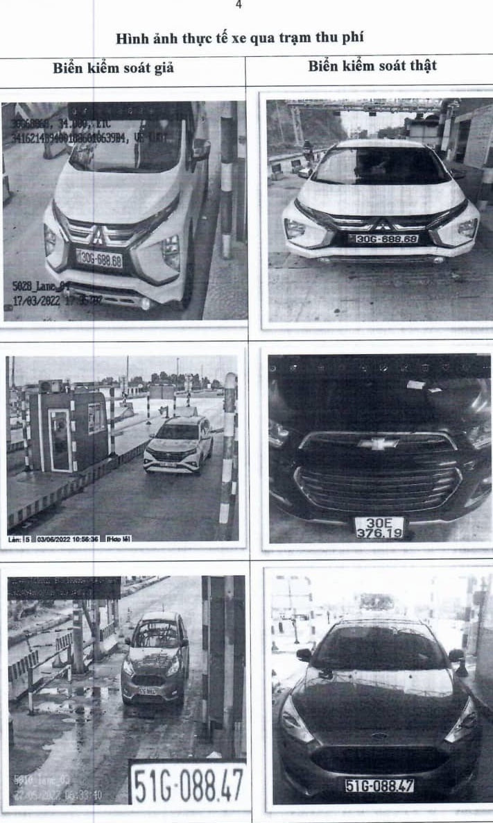 Sau khi đối chiếu dữ liệu hình ảnh xe qua trạm và hồ sơ của khách hàng cung cấp đăng ký dịch vụ thì nghi ngờ các trường hợp này sử dụng biển số giả khi lưu thông qua trạm thu phí.