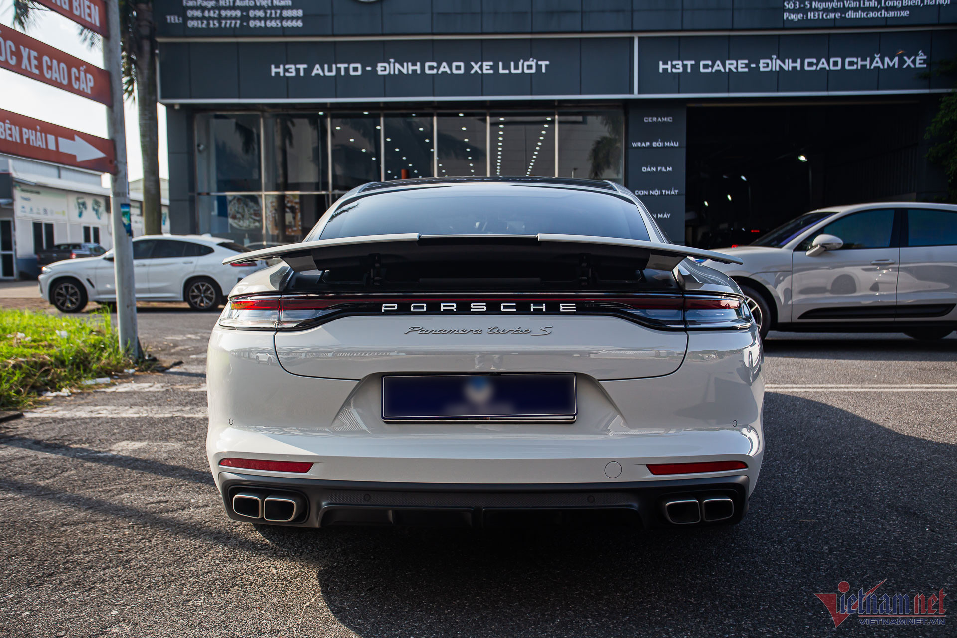 Về cơ bản, ngoại thất của bản Turbo S không quá khác biệt so với Panamera bản thường. Phần đầu xe có hốc gió cỡ lớn kèm cánh chia gió sơn đen. Phần đuôi hầm hố hơn nhờ hệ thống ống xả kép đặt đối xứng, chính giữa có bộ ốp sơn đen thiết kế đơn giản.