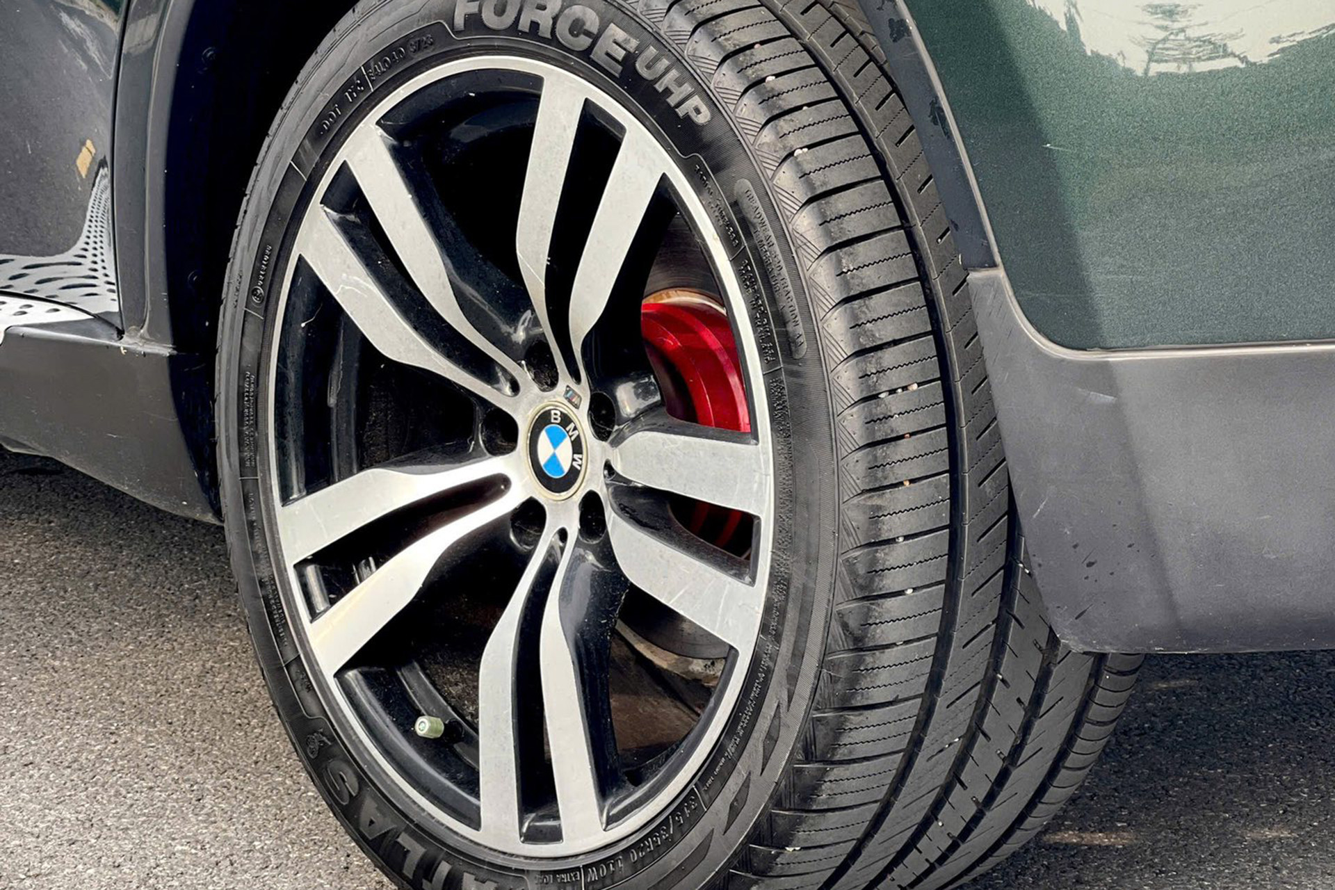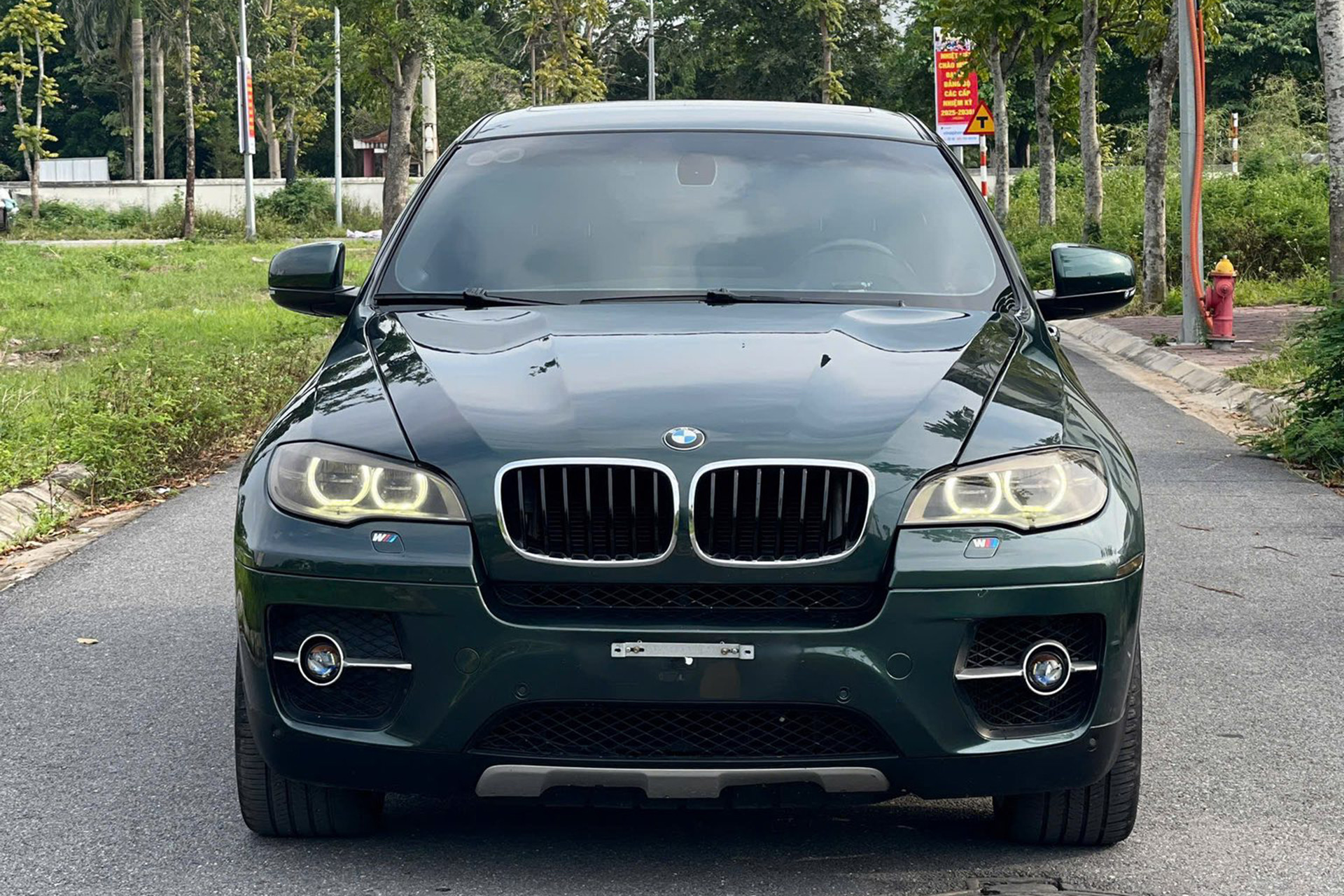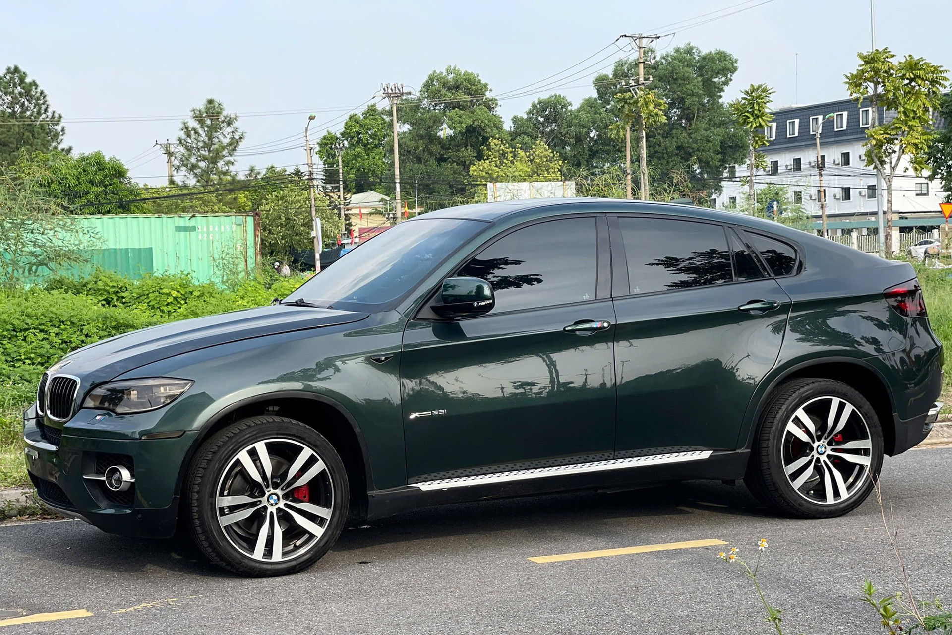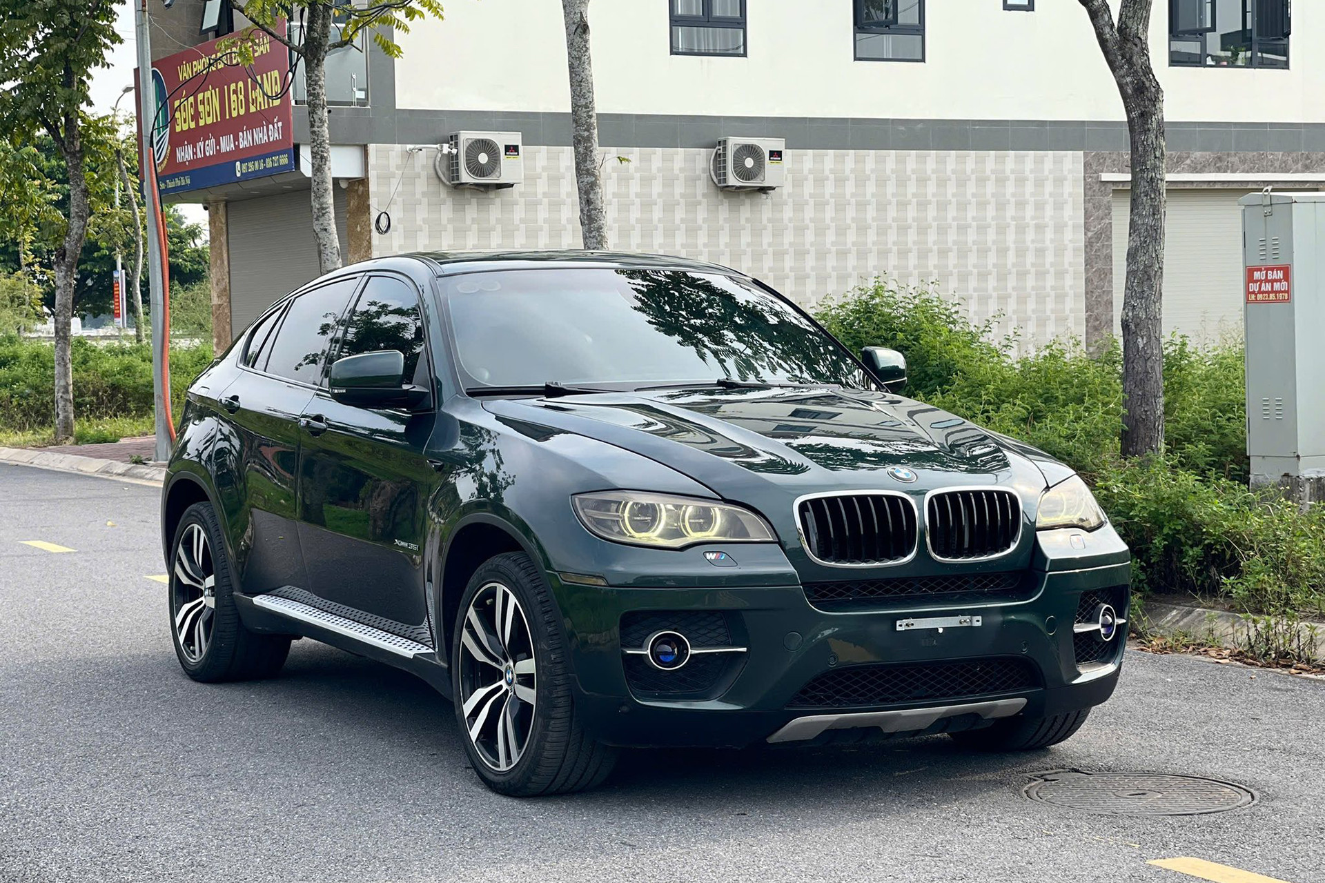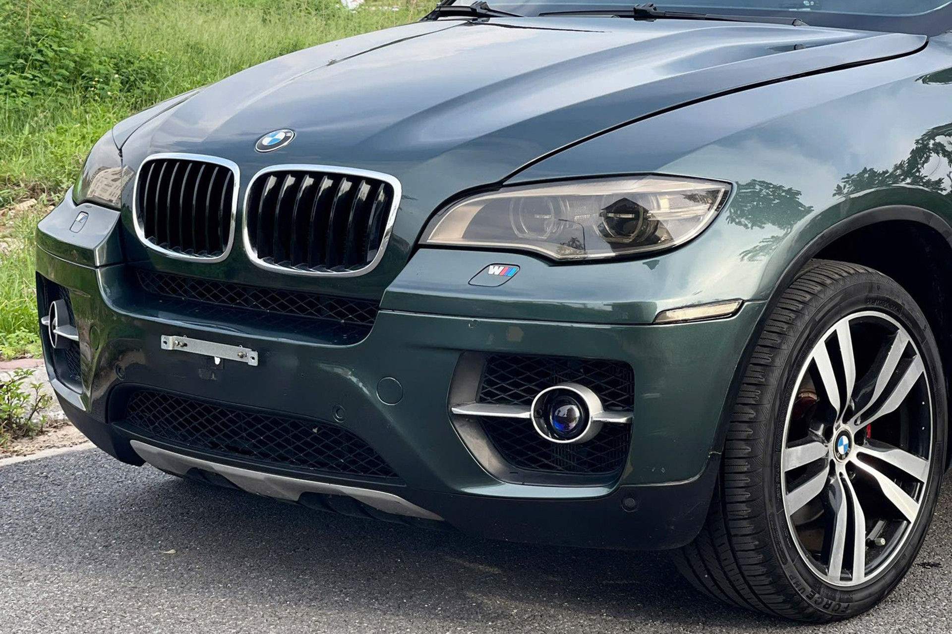 Về ngoại thất, chiếc BMW X6 đời 2009 này có màu sơn xanh rêu. Chủ nhân chiếc xe đã trang bị cho xe bộ mâm đa chấu kích thước 20 inch, phay sáng bề mặt và bên trong màu đen. Bộ mâm này giúp chiếc xe thêm phần thể thao hơn so với loại 5 chấu đơn tiêu chuẩn 19 inch.
