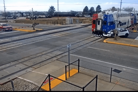 Mỹ - Một chiếc SUV dừng chờ tàu đã bị chiếc xe phía sau húc vào đuôi khiến nó lao vào đường ray. Kết quả, vụ va chạm nghiêm trọng khiến cả ô tô và tàu hỏa cùng thiệt hại nặng.