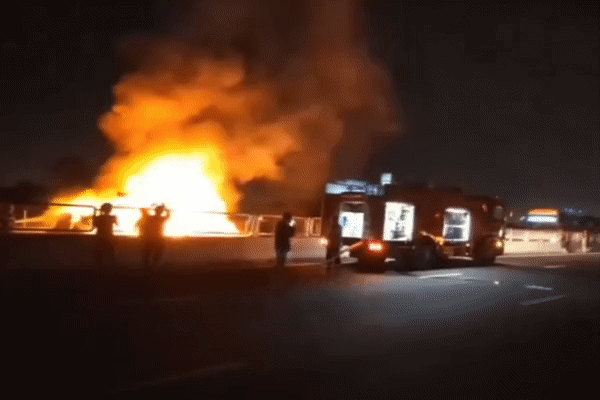 Khi đến Km94+700 đoạn thuộc huyện Cẩm Mỹ, Đồng Nai (cách trạm thu phí khoảng 200m) thì bất ngờ xe tải bốc cháy dữ dội. Ngọn lửa xuất phát từ phía đầu xe và nhanh chóng lan ra bao trùm toàn bộ phần cabin.