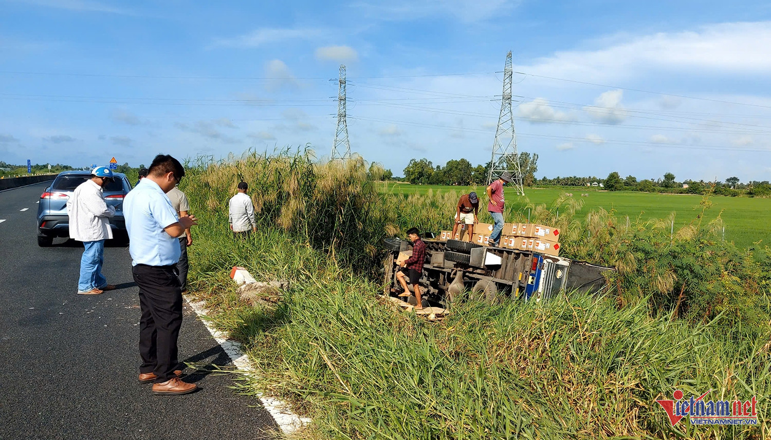 Vụ việc xảy ra vào khoảng 4h ngày 23/8, tại Km2206 trên tuyến Lộ Tẻ - Rạch Sỏi (hướng Cần Thơ – Kiên Giang), xe tải mang BKS 60C-433.xx lao xuống ruộng, lật ngửa.