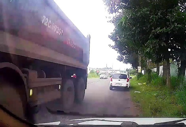 Thời điểm trên, xe tải bên mang BKS 72C-093.07 lưu thông theo hướng từ Châu Pha đi Tóc Tiên thì bất ngờ vượt lên một ô tô đi cùng chiều phía trước, chạy lấn sang làn ngược lại. Đúng lúc này, tài xế điều khiển xe ô tô con đang đi đúng chiều may mắn đã kịp thời đánh lái qua phải để tránh xe tải.