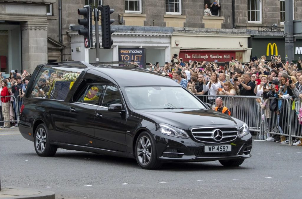 Chiếc Mercedes-Benz phục vụ cho lễ tang của Nữ hoàng Anh là do giám đốc nhà tang lễ địa phương William Purvee cung cấp. Chiếc xe ban đầu có màu bạc, nhưng được chuyển sang màu đen để phù hợp với các giao thức hoàng gia.