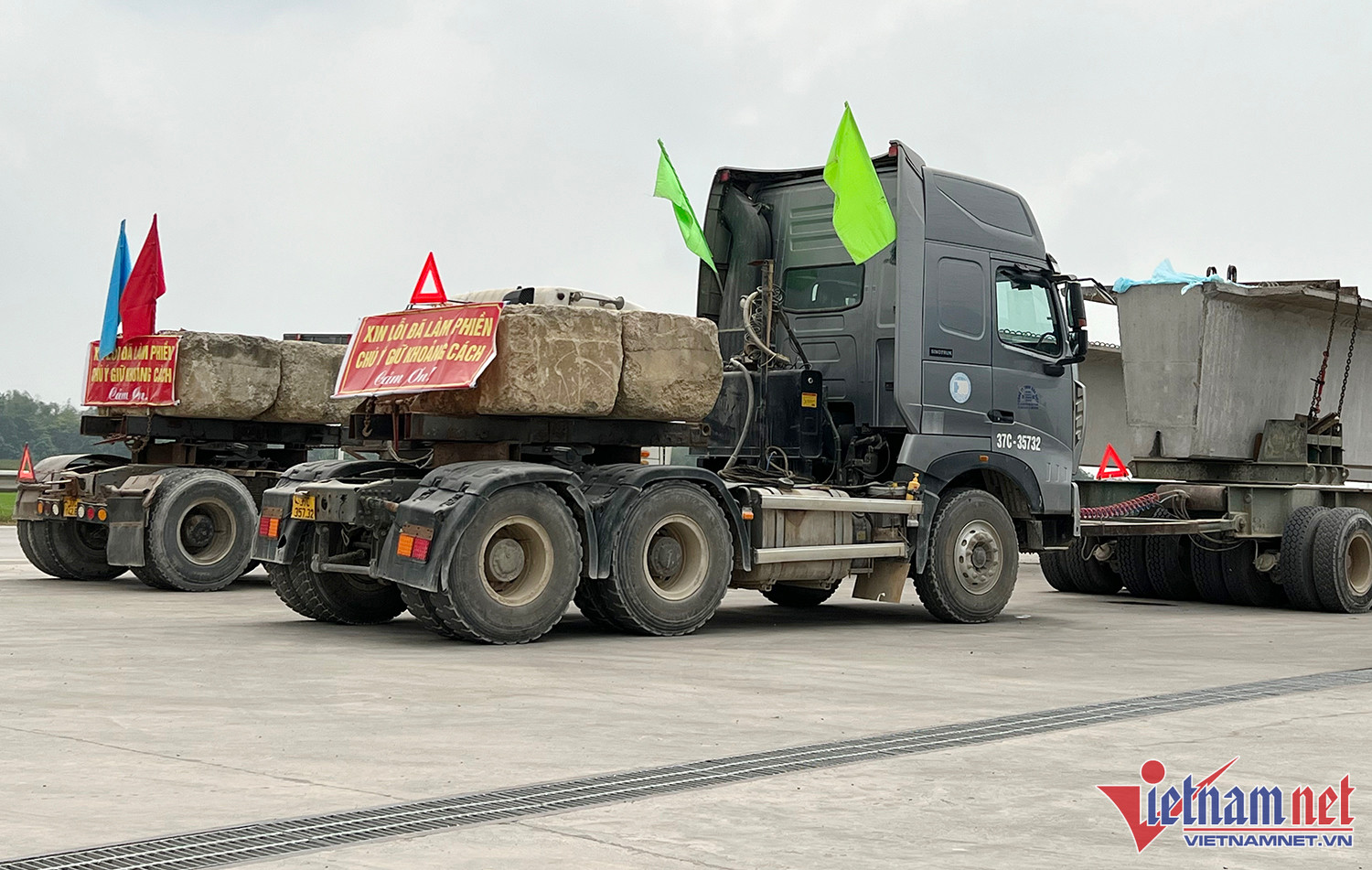 Tìm hiểu được biết, mỗi dầm cầu dài hơn 38m, nặng gần 100 tấn được cẩu lên 2 đầu ô tô đầu kéo. Để chở được dầm cầu rất nặng này, đơn vị vận tải đã tự chế điểm nối giữa xe đẩy từ phía sau và xe kéo phía trước để tăng lực chở. Đầu xe đẩy phía sau còn được cẩu lên 2 khối đá để giữ thăng bằng, hỗ trợ xe phía trước kéo dầm cầu. Mỗi một đầu xe kéo trước hoặc đẩy sau đều có 2 tài xế.