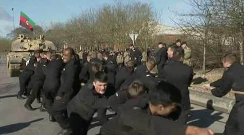 Các binh sĩ ở Trung đoàn Xe tăng Hoàng gia Anh đã nỗ lực lập kỷ lục thế giới Guinness, bằng cách kéo một chiếc xe tăng 62 tấn.