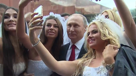 Trong một video clip mới đây do kênh RT đăng tải, Tổng thống Nga Vladimir Putin đã bị hàng loạt cô dâu "bao vây".