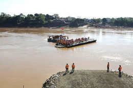 Ghi nhận của PV VietNamNet, từ 12h trưa nay 6/10, lực lượng công binh đã bắt đầu việc lắp lại cầu phao.
