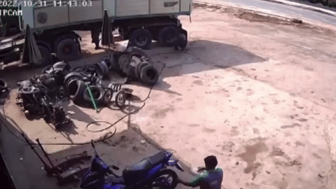 Đoạn video ghi cận cảnh cho thấy, chiếc lốp xe đã ngay lập tức bị nổ khi vừa tiếp xúc với lưỡi rìu nóng đỏ và hết sạch hơi chỉ sau vài giây.