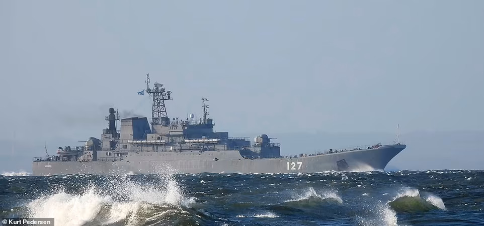 | Tàu đổ bộ Korolev của Hải quân Nga được phát hiện ngoài khơi vùng biển Đan Mạch trước khi tiến qua eo biển Manche. Ảnh: Kurt Pedersen |
