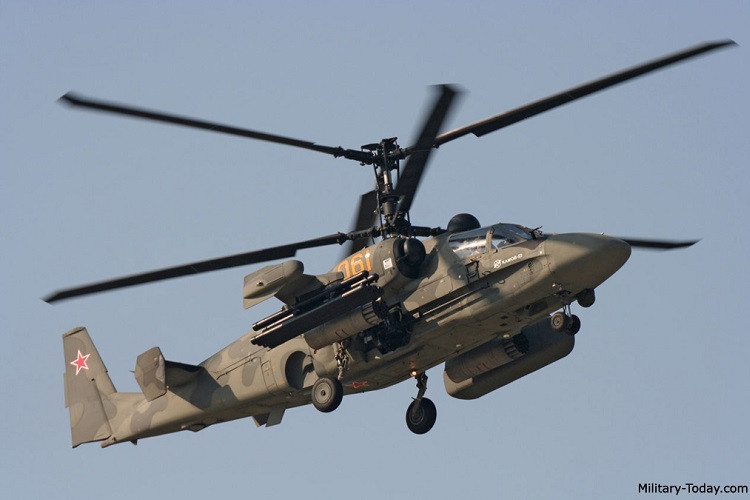 Kamov Ka-52 ‘cá sấu’ là trực thăng do Nga nghiên cứu, chế tạo và sản xuất trong những năm 2000. Ka-52 dài 13,53m; bán kính cánh quạt trên rotor 7,25m; cao 4,95m. Trọng lượng rỗng gần 8 tấn, trọng lượng cất cánh tối đa là 10,8 tấn. Kíp phi công gồm 2 người.