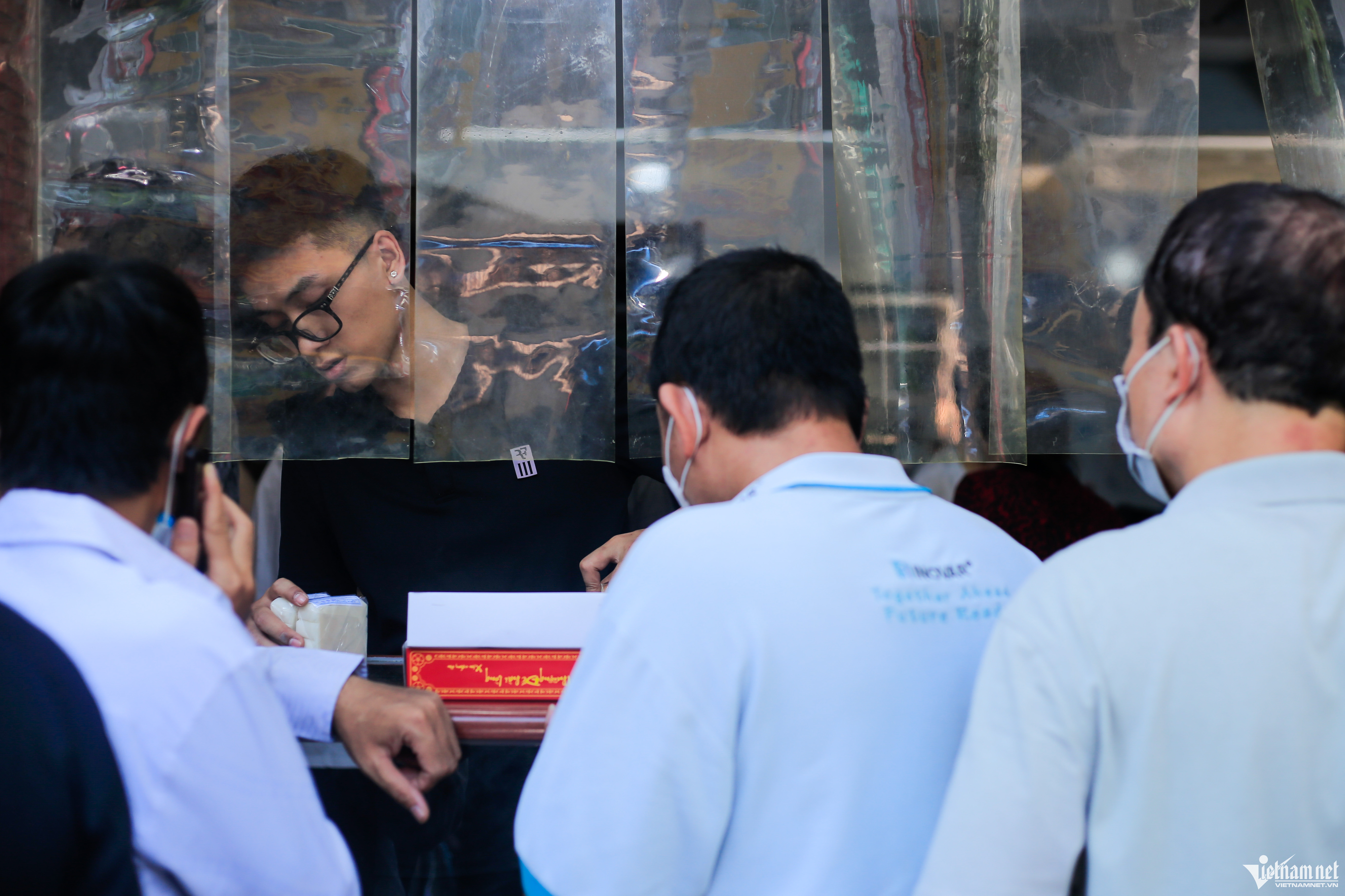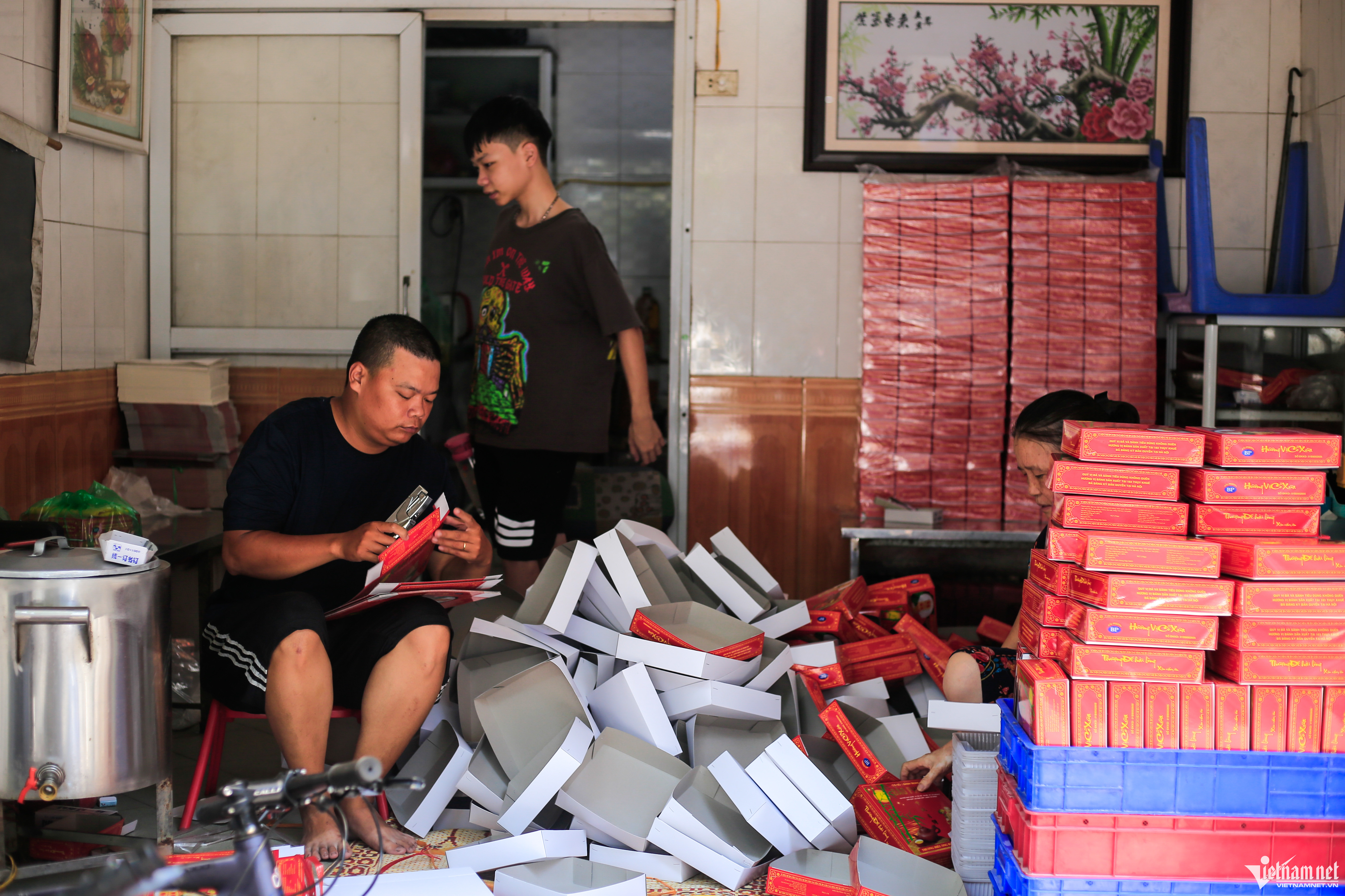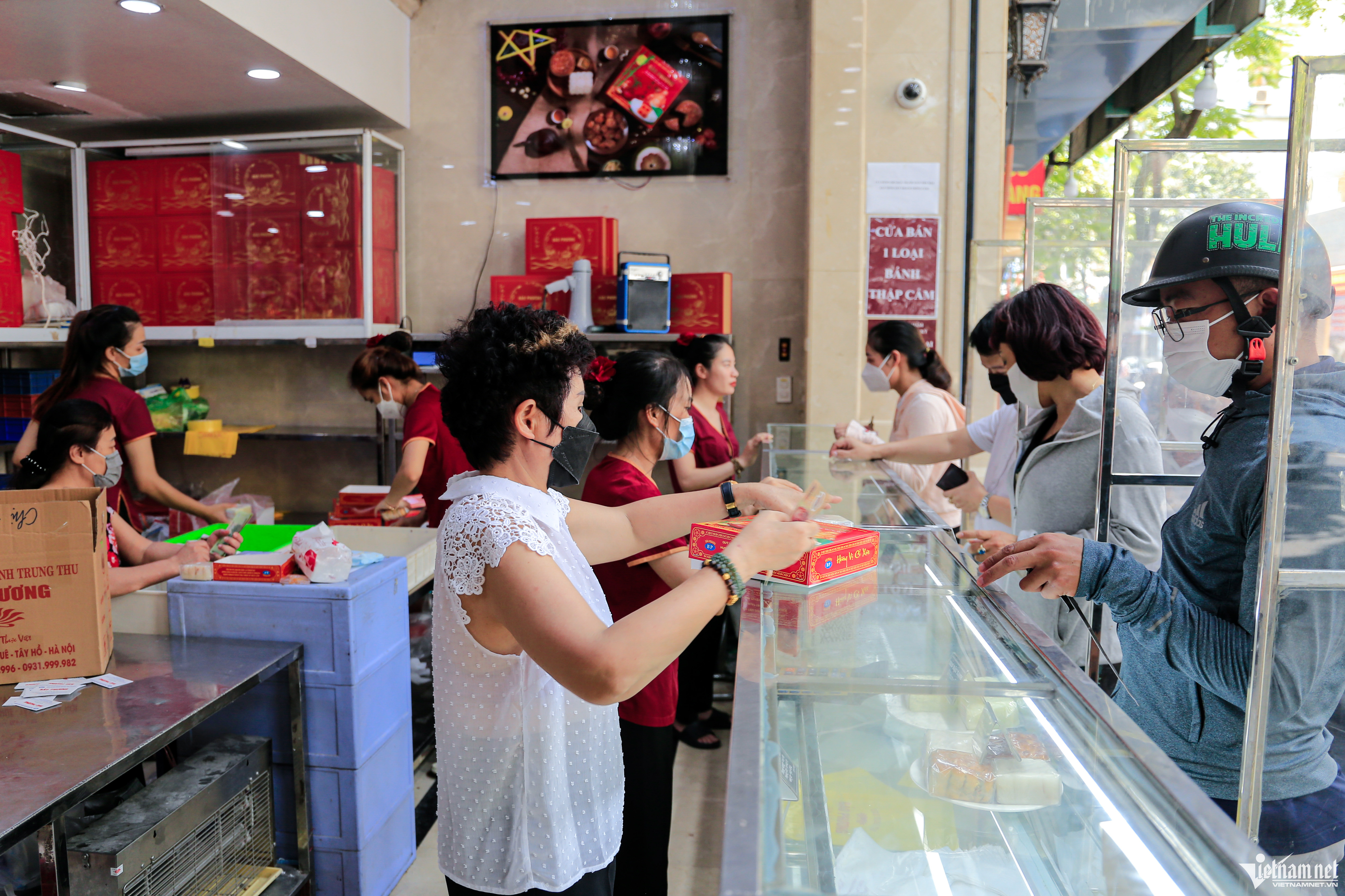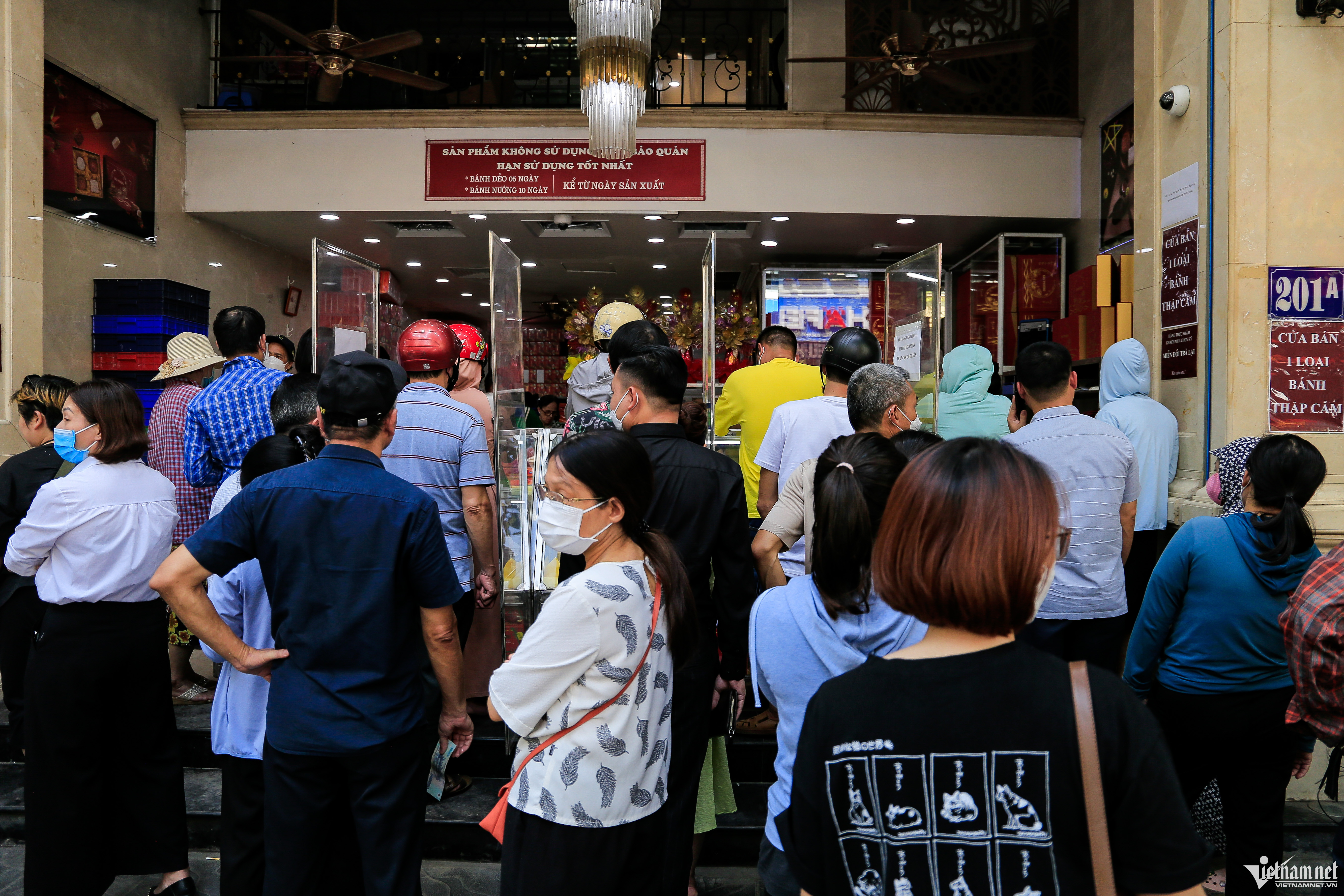 Trưa 6/9, cảnh xếp hàng mua bánh trung thu lại diễn ra giống mọi năm ở một cửa hàng trên phố Thụy Khuê (quận Tây Hồ, Hà Nội).Theo người dân, cảnh này xuất hiện từ rất sớm. Tại đây, nhân viên luôn chân luôn tay, mỗi người một công việc, người bán hàng, người đóng gói và thu tiền. Một số người tỏ ra sốt ruột khi phải đứng đợi quá lâu, trung bình mỗi khách phải xếp hàng từ 30-50 phút mới tới lượt.Chị Nguyễn Thị Phương đi từ Dương Nội (quận Hà Đông) lên phố Thuỵ Khuê (quận Tây Hồ) khoảng 15km để mua bánh. “Hôm qua tôi đã mua 1 lần để đem đi biếu, nhưng nay lại phải quay lại mua thêm một lần nữa. Mỗi dịp trung thu tôi phải mua khoảng 40-50 chiếc để cho gia đình thưởng thức cũng như đem làm quà”, chị Phương chia sẻ. Có khách hàng phải liệt kê ra giấy vì mua số lượng lớn. Sau đó chị mất khoảng 15 phút chờ nhân viên lấy đủ số lượng bánh cần mua. Chị Thuý và Diệp (quận Cầu Giấy) tính nhẩm, bàn bạc xem phải mua bao nhiêu bánh để đem đi biếu mọi người ở cơ quan. Hai phụ nữ phải xếp hàng mất hơn 40 phút.Ông Trung (quận Hoàng Mai) cầm sẵn tiền trên tay, chờ tới lượt vào mua.Tại cơ sở 2, tình trạng đông đúc cũng diễn ra tại đây. Để mọi người không phải chen lấn, xô đẩy, trước giờ mở cửa, nhân viên làm các tấm mica ngăn cách để giữa các hàng. Do lượng người đổ về mỗi lúc một đông, cửa hàng này phải dành riêng một lối đi để chuyển bánh.Những ngày này cửa hàng hoạt động từ sáng đến tối, công nhân phải vận chuyển hàng liên tục không ngừng nghỉ. Cứ 15-20 phút lại có một mẻ bánh được chuyển vào.Ngoài ra, cửa hàng còn thuê một hộ gia đình đối diện chuyên đóng hộp để có thể đáp ứng số lượng khách mỗi lúc một đông vào những ngày tới.“Gia đình chuyên sản xuất bánh theo hương vị truyền thống để có thể hợp khẩu vị với tất cả mọi người. Mỗi năm, lượng khách lại tăng lên, nhất là sau 2 năm dịch Covid-19 người dân cũng thoải mái trong việc mua hàng hơn. Giá bánh vẫn giữ nguyên như mọi năm, từ 40.000-70.000 đồng/chiếc”, một nhân viên chia sẻ. “Cứ nghĩ gần trưa sẽ vãn hơn nhưng đến đây vẫn phải xếp hàng gần 1 tiếng đồng hồ để mua 6 hộp bánh”, bà Hoa than vãn.Bà Đàm đi từ Hưng Yên cách cửa hàng gần 60km qua mua 16 hộp bánh Trung thu về thắp hương và đem biếu. "Năm nào gia đình tôi cũng ăn ở đây, bánh hợp khẩu vị với những người có tuổi như tôi", bà Đàm cho biết.