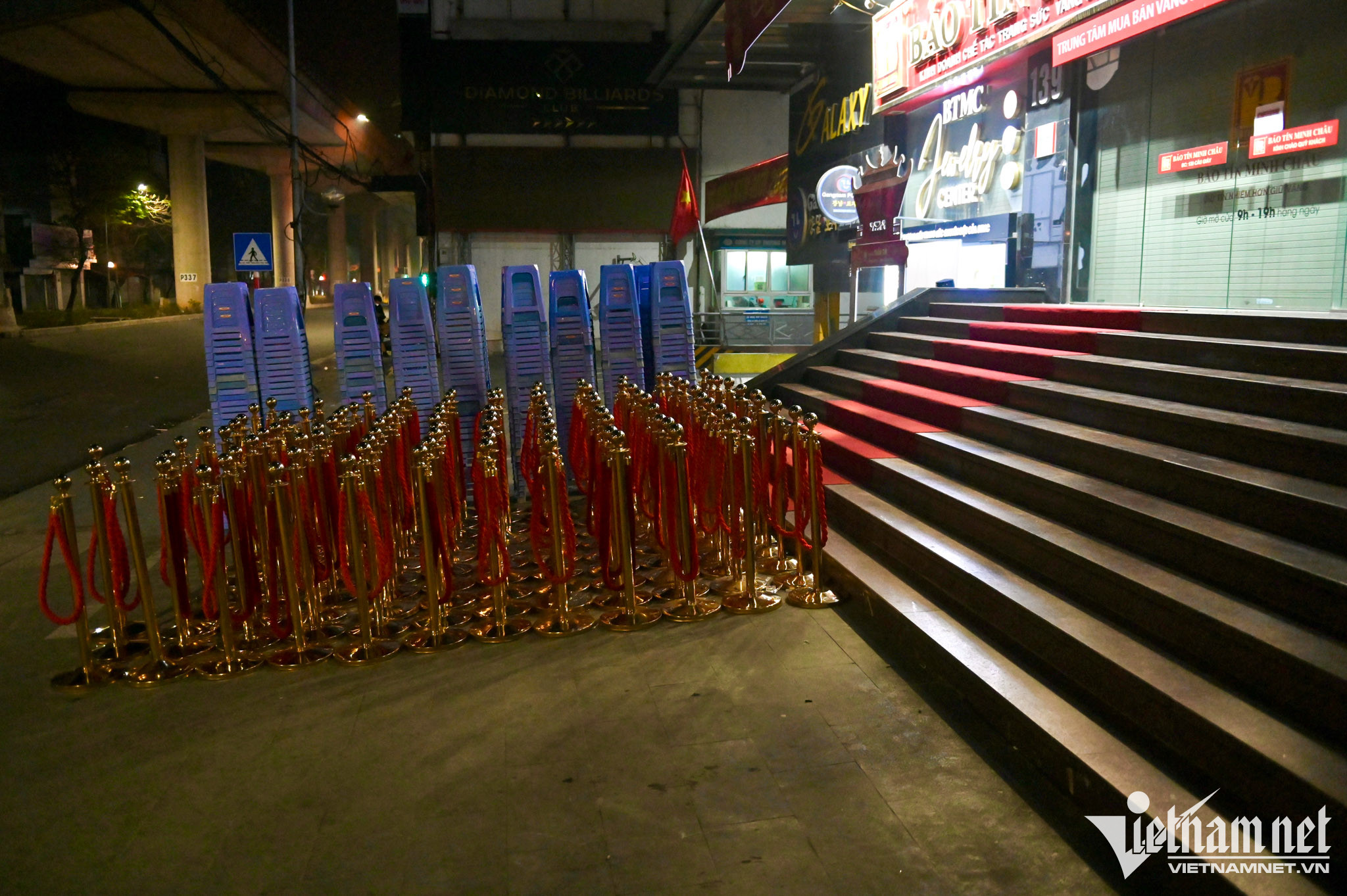 Tại một cửa hàng kinh doanh vàng trên phố Cầu Giấy khách vắng vẻ hơn, gần 5h sáng, nhân viên rục rịch mở cửa. Các hàng ghế được xếp sẵn nhưng vẫn chưa có ai chờ sẵn như ngày này mọi năm.