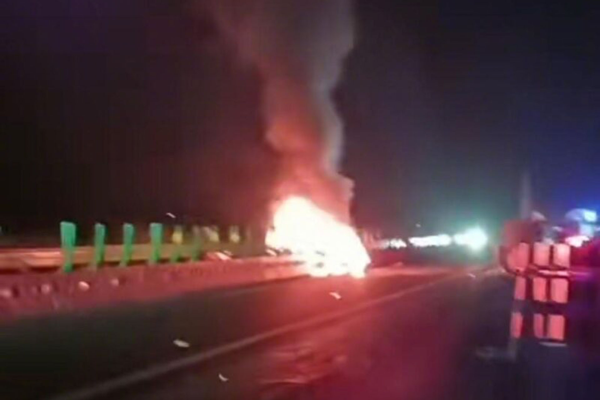 Tài xế chỉ xoay vô lăng và đạp phanh một giây sau đó, nhưng chiếc xe không thể kiểm soát, đâm vào cột chắn bê tông. Vào thời điểm xảy ra tai nạn, chiếc xe vẫn đang di chuyển với tốc độ khoảng 97 km/h. Truyền thông Trung Quốc đưa tin, vụ tai nạn khiến 3 người thiệt mạng.