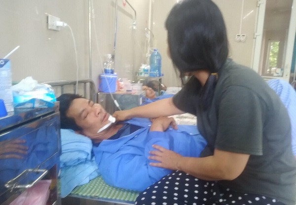 "Tôi chỉ mong chòng sớm tỉnh lại, sức khỏe phục hồi. Nay điều trị tốn nhiều tiền quá, các con vẫn còn nhỏ, đứa lại bệnh tật. Chồng tôi có mệnh hệ nào mấy mẹ con biết trông vào đâu", người phụ nữ khốn khổ khóc nấc.