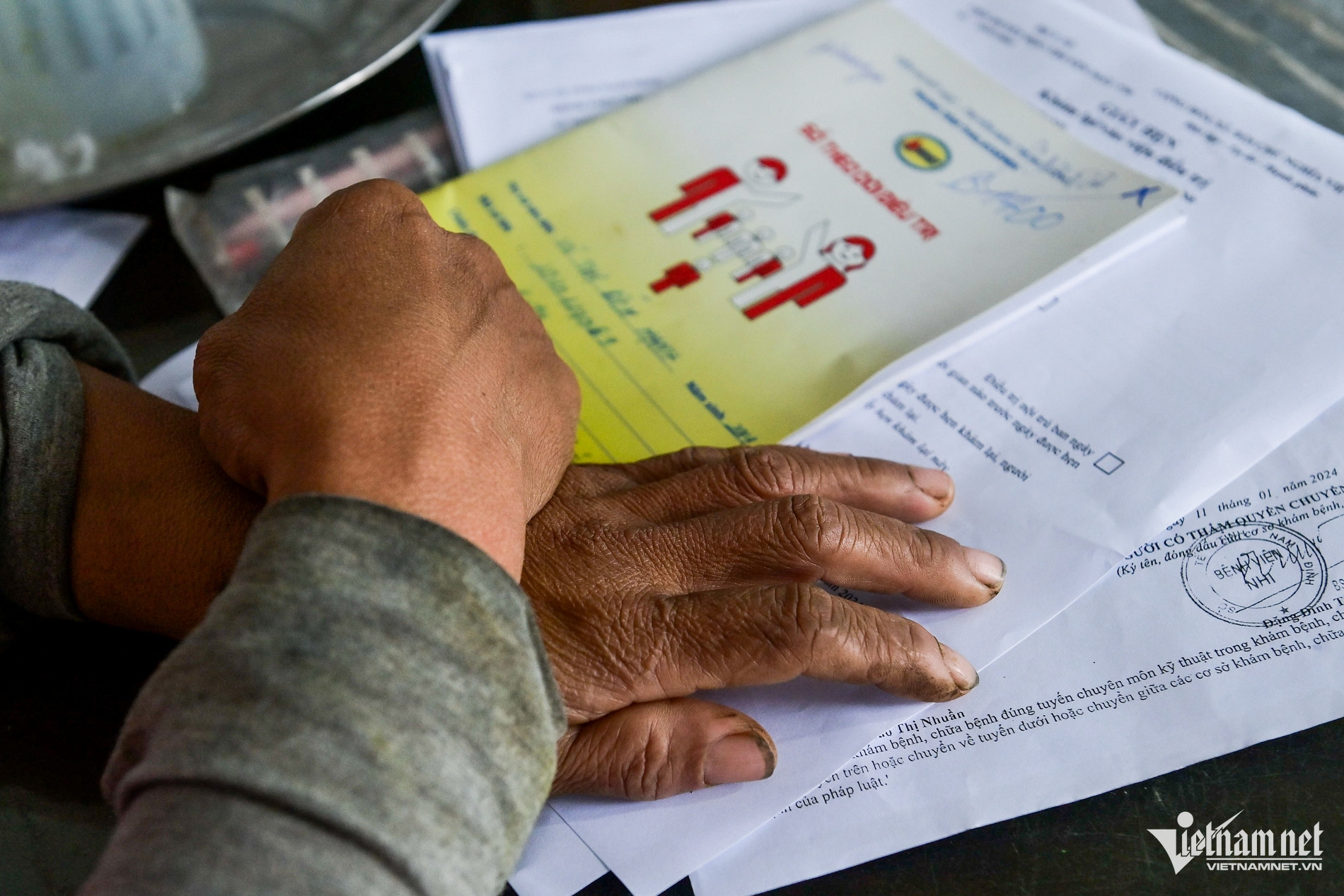 Hơn nửa năm nay, đến lịch truyền máu, cứ 3h sáng, hai mẹ con lại dắt díu nhau lên Hà Nội, hôm nào nhanh thì 10h, 11h khuya về đến nhà. Ông bà ngoại không còn, bà nội trên 80 tuổi già yếu lại ở cách nhà 15km nên vào những ngày này, bà Hà chỉ đành gửi 3 đứa con sang hàng xóm nhờ đưa đi học, tối cho ăn giúp đợi mẹ về.