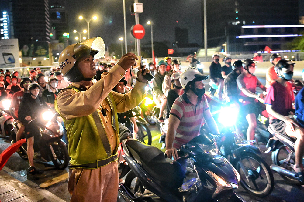 Thượng tá Nguyễn Thăng Long - Phó trưởng phòng Tham mưu - cho biết Ban giám đốc Công an TPHCM đã chỉ đạo các phòng nghiệp vụ, công an 21 quận, huyện và TP Thủ Đức túc trực 100% quân số trước, trong và sau trận đấu chung kết lượt về giữa tuyển Việt Nam và Thái Lan. Trong tối 5/1 rạng sáng 6/1, lực lượng gồm nhiều đơn vị phối hợp đã làm nhiệm vụ hiệu quả, vừa đảm bảo an ninh trật tự địa bàn vừa tạo điều kiện để người dân thể hiện niềm vui trong khuôn khổ pháp luật, không để xảy ra vụ việc đáng tiếc nào.