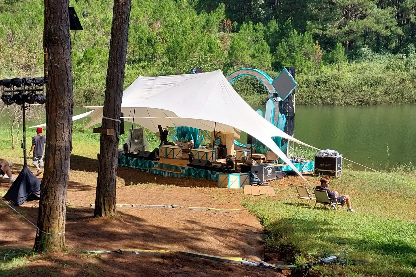Tại đây, một đơn vị dựng 23 lều cắm trại có lót sàn gỗ, mỗi lều rộng khoảng 20m2. Sân khấu được trang trí đèn, dựng sàn gỗ với diện tích khoảng 48m2.