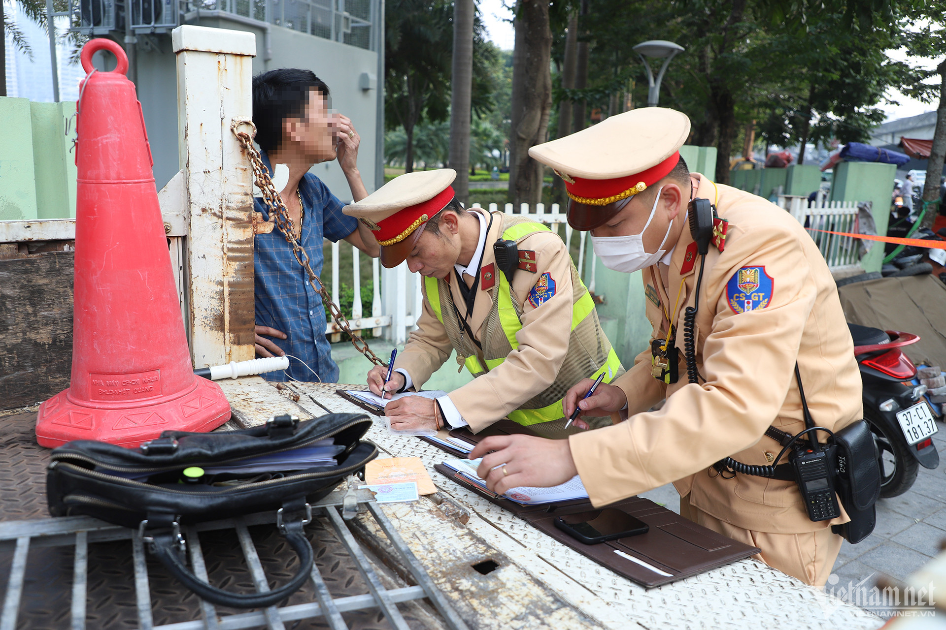 Tổ công tác của Đội CSGT đường bộ số 7 đã lập biên bản xử phạt tài xế Q. với lỗi: "Đón khách không đúng quy định trên những tuyến đường đã xác định điểm đón, trả khách". Với lỗi trên, tài xế Q. sẽ bị xử phạt 1,5 triệu đồng và tước giấy phép lái xe 2 tháng.