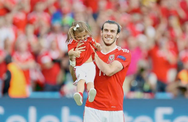 Sau trận thắng lịch sử của Xứ Wales, siêu sao xứ Wales nô đùa hạnh phúc với cô con gái đầu lòng Alba Violet.