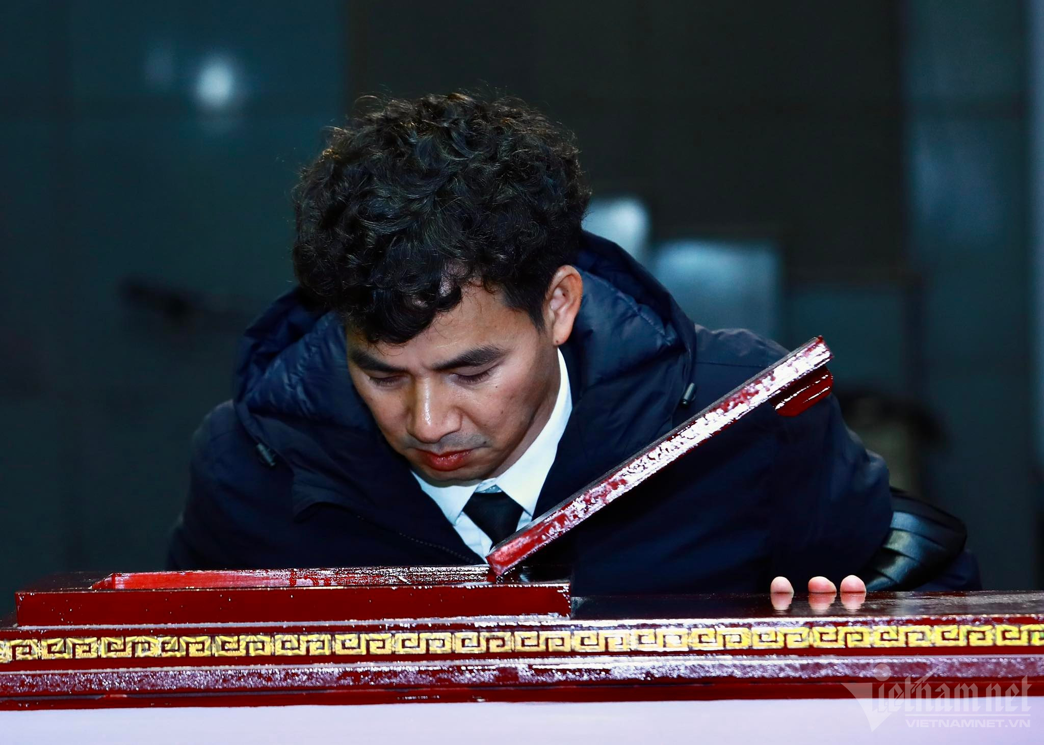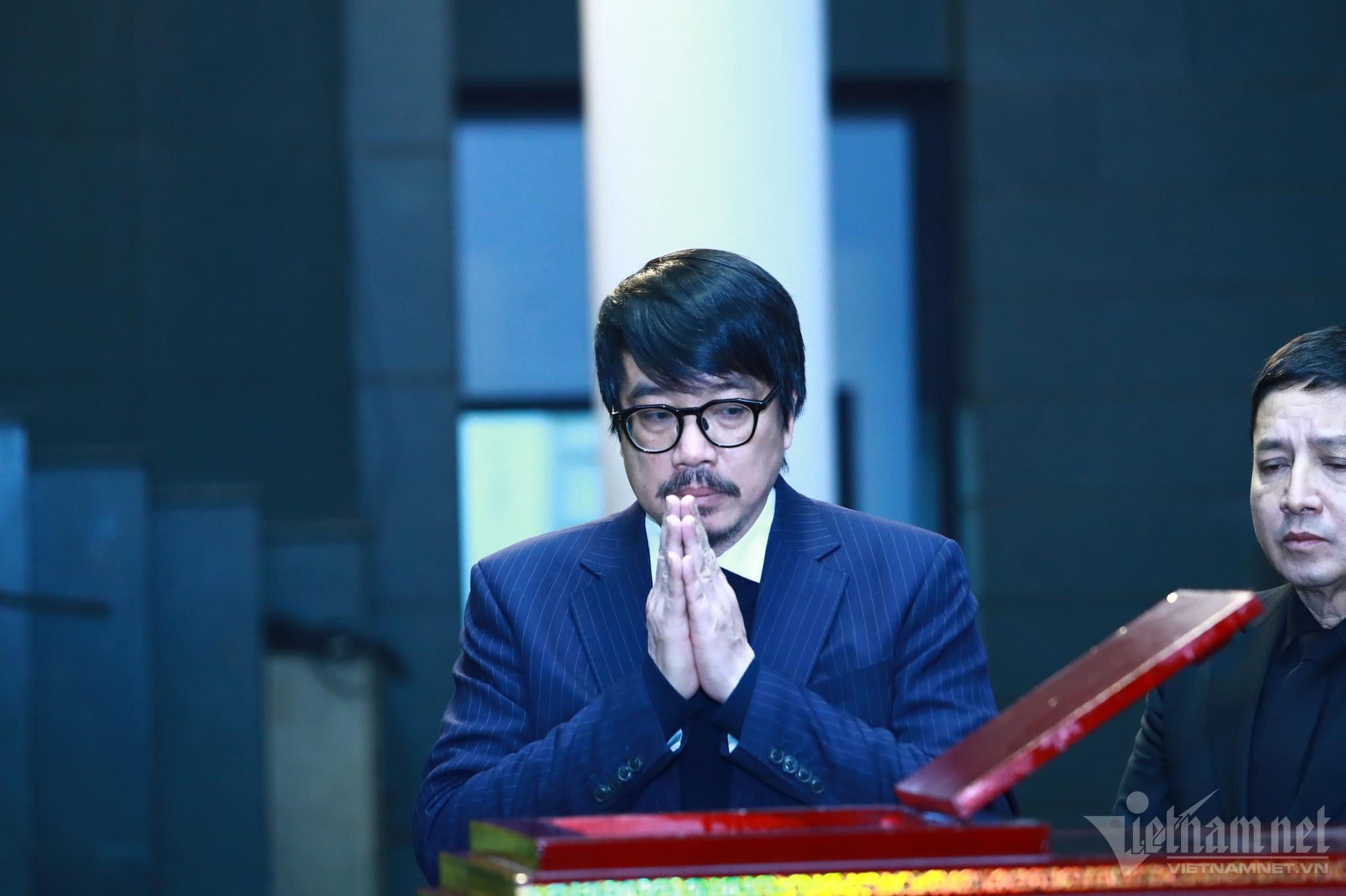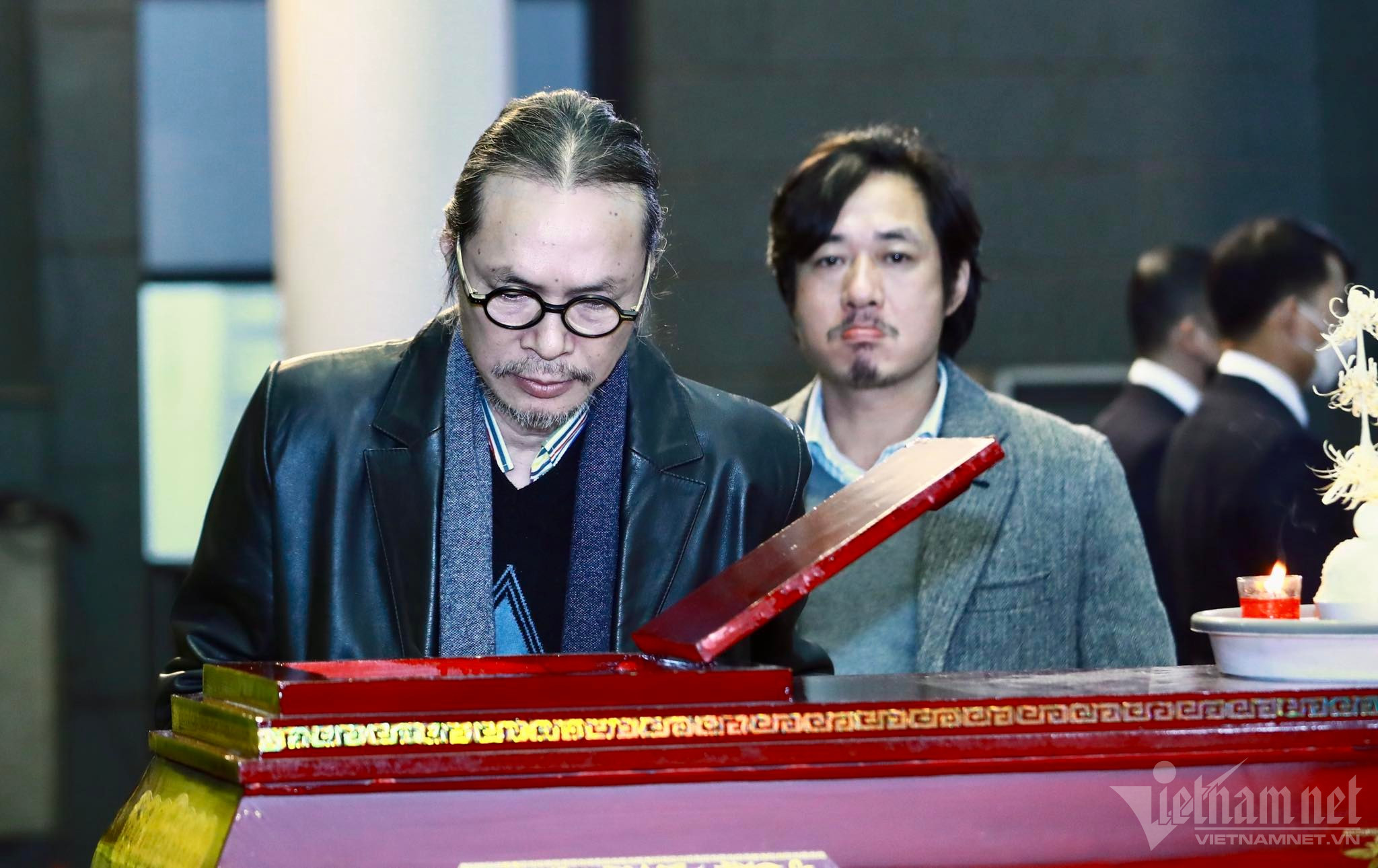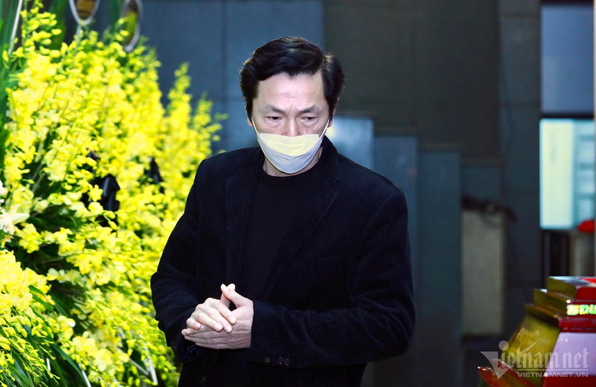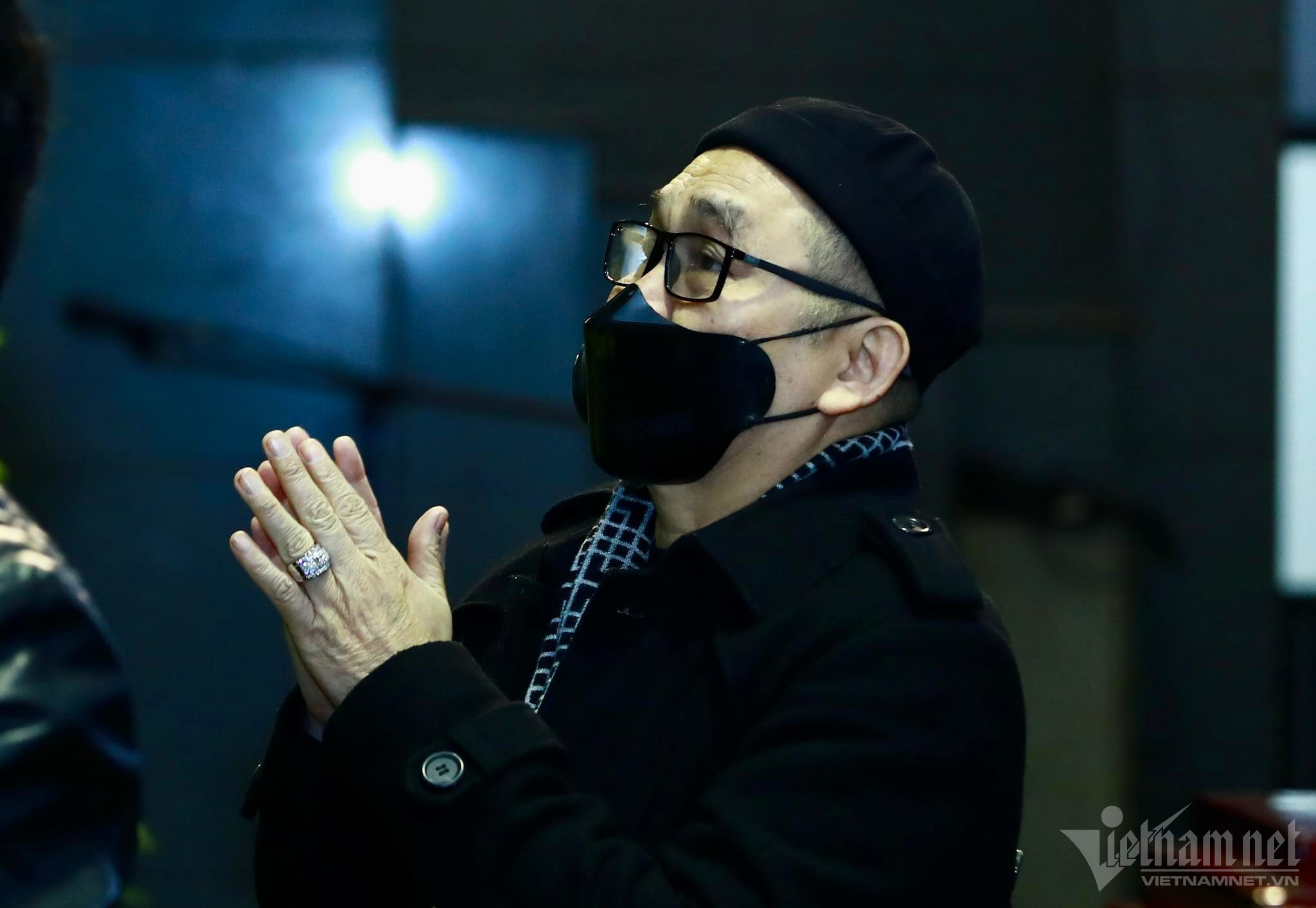 Diễn viên Quốc Tuấn, NSƯT Đức Khuê, Thiện Tùng, NSƯT Sĩ Tiến... bên linh cữu NSND Trần Tiến.
