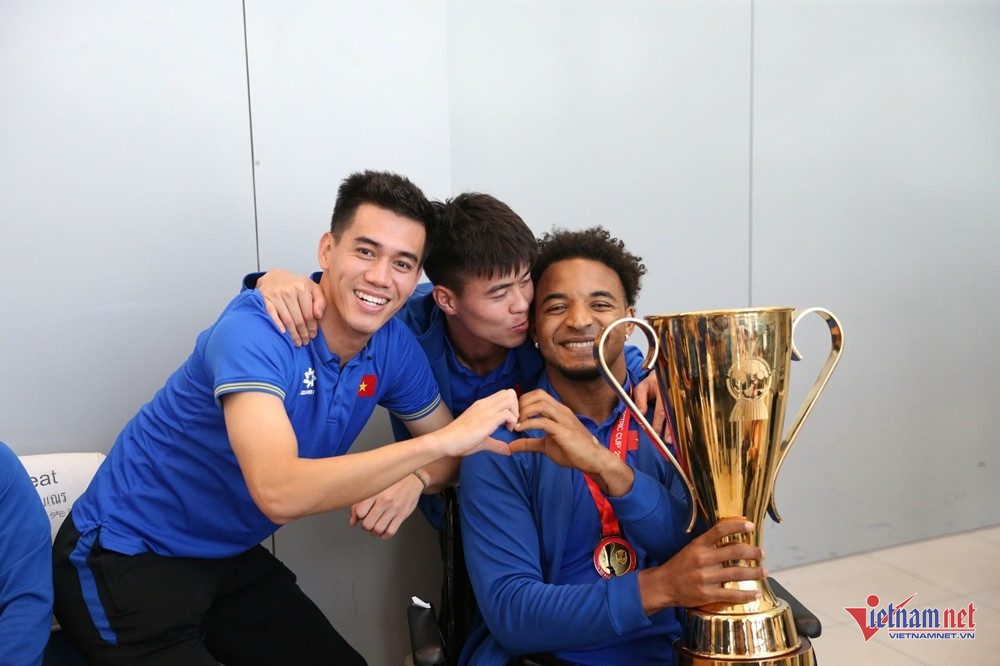 Không những vậy, đội trưởng Duy Mạnh và các đồng đội cực kỳ tinh tế khi trao lại chiếc cúp vô địch cho Xuân Son ngay tại sân bay.