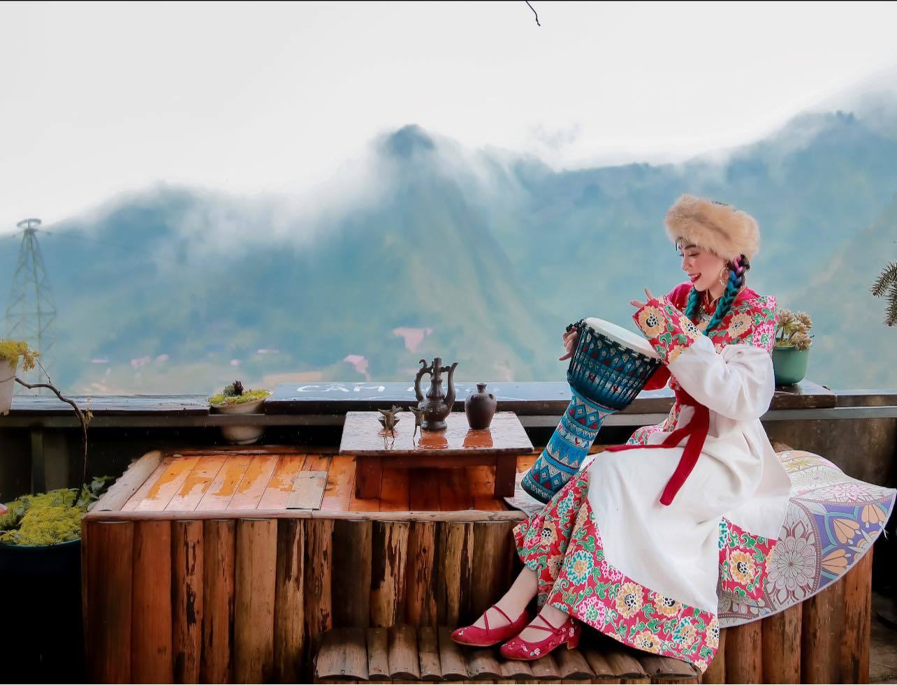 “Trong chuyến đi mới nhất, mình quyết định chụp bộ ảnh với trang phục Mông Cổ - Tây Tạng tại không gian núi rừng Sa Pa. Đây vốn không phải trang phục của các dân tộc Việt Nam nhưng nó lại phù hợp với cảnh sắc mây, núi hoang sơ, vừa thơ mộng vừa hùng vĩ của Sa Pa. Mình muốn trải nghiệm một hình ảnh mới lạ hơn”, chị Trang chia sẻ.