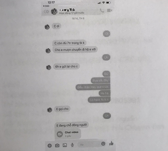 Bằng thủ đoạn hack facebook em gái của chị Q. là Nguyễn Ngọc A. (hiện đang sinh sống tại nước ngoài), đối tượng đã dùng messenger của chị A. gọi điện, nhắn tin cho chị Q. để nhờ chị Q. chuyển tiền cho bạn của chị A. tại Việt Nam.