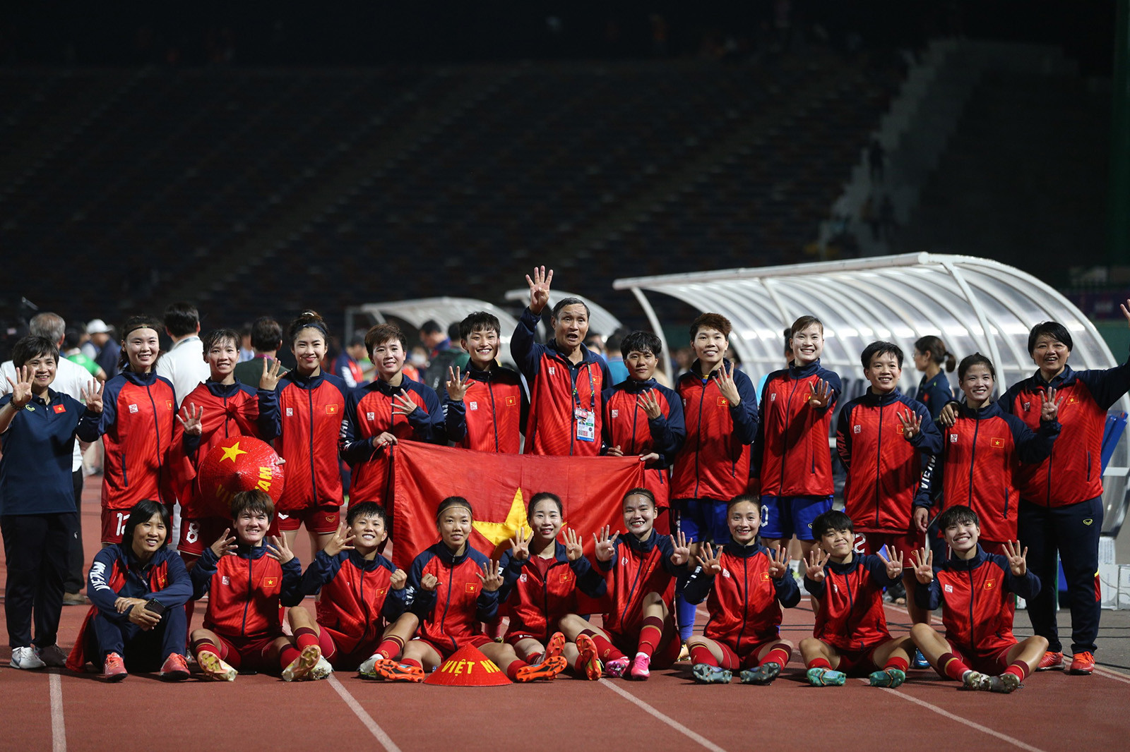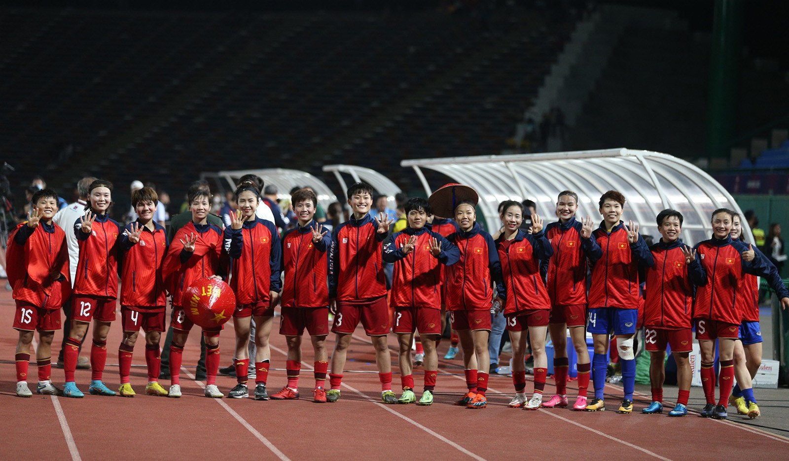 Sau khi trận đấu khép lại, HLV Mai Đức Chung dùng loa cầm tay gửi lời cảm ơn đến khán giả Việt Nam có mặt trên khán đài tiếp lửa cho tuyển nữ Việt Nam.