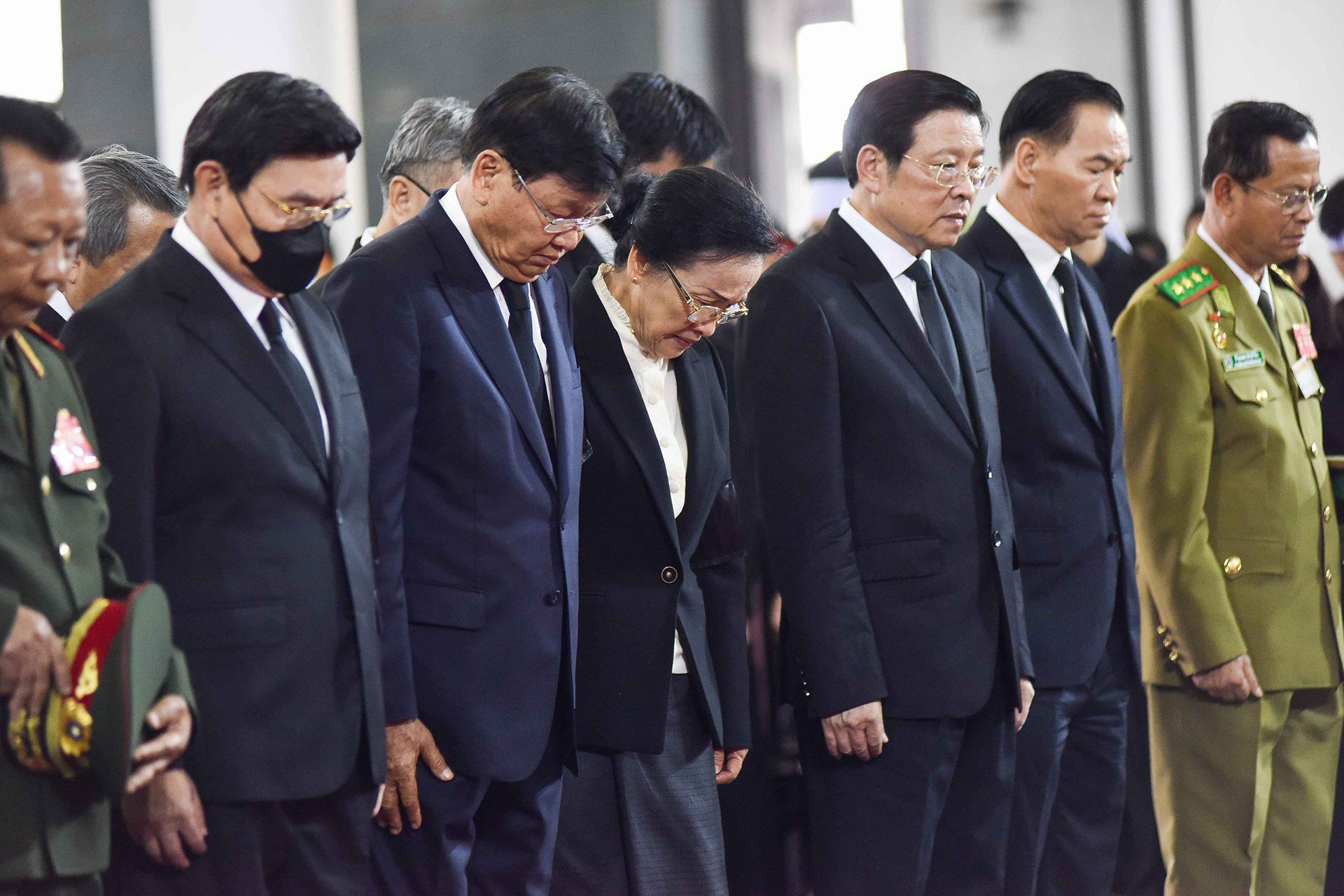Tổng Bí thư, Chủ tịch nước Lào Thongloun Sisoulith và phu nhân Naly Sisoulith cùng đoàn đại biểu cấp cao Lào đến Nhà tang lễ quốc gia (Hà Nội) để viếng Tổng Bí thư Nguyễn Phú Trọng và chia buồn với phu nhân Ngô Thị Mận cùng gia quyến.