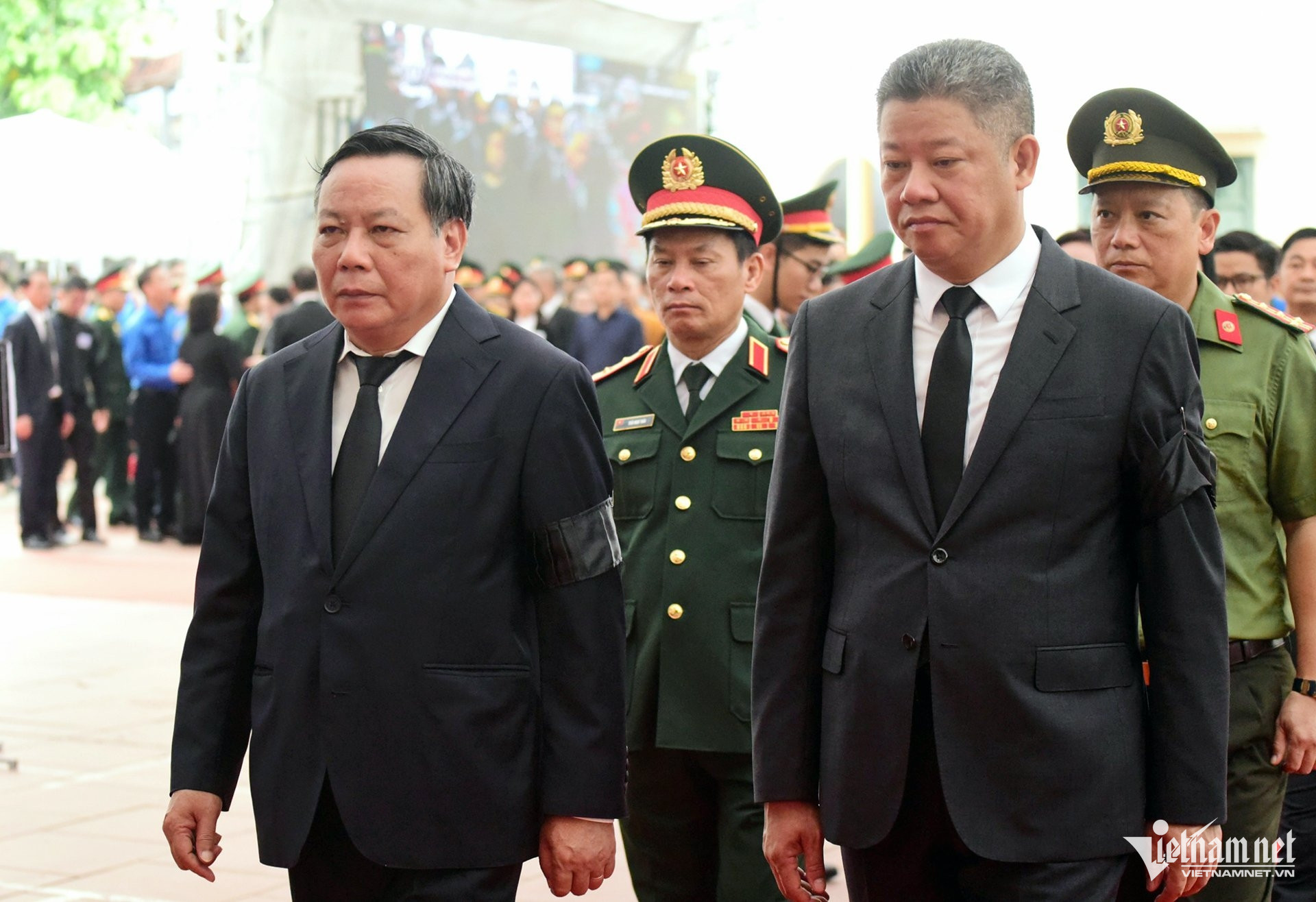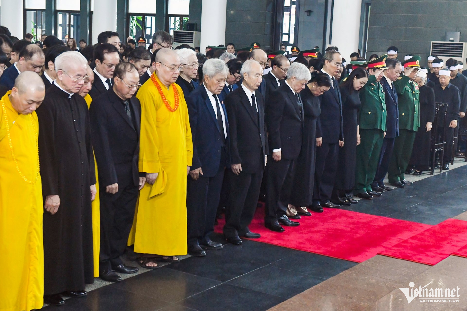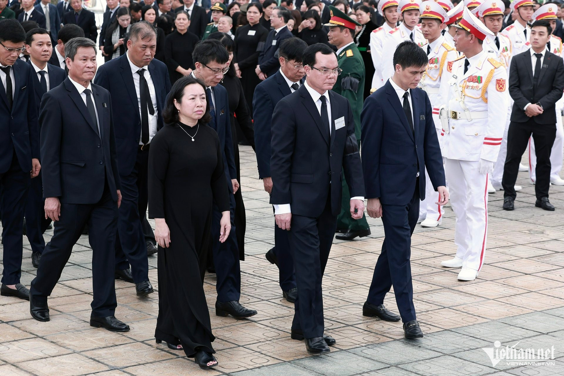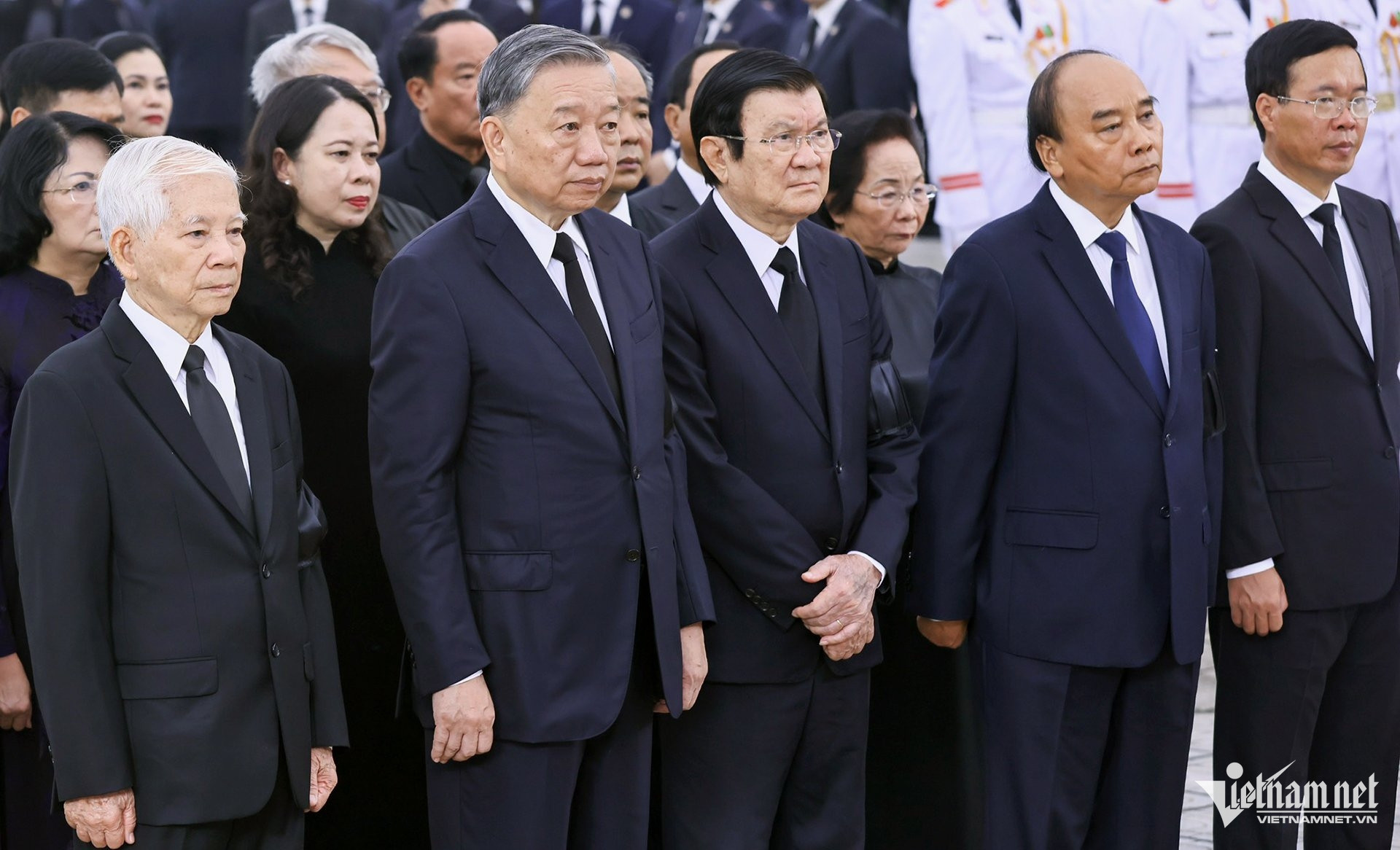 Trong đoàn có Thủ tướng Phạm Minh Chính, Chủ tịch Quốc hội Trần Thanh Mẫn; nguyên Tổng Bí thư Nông Đức Mạnh; các nguyên Chủ tịch nước: Trương Tấn Sang, Nguyễn Minh Triết, Nguyễn Xuân Phúc, Võ Văn Thưởng; nguyên Thủ tướng Nguyễn Tấn Dũng; các nguyên Chủ tịch Quốc hội: Nguyễn Sinh Hùng, Nguyễn Thị Kim Ngân, Vương Đình Huệ cùng nhiều lãnh đạo, nguyên lãnh đạo Đảng, Nhà nước.