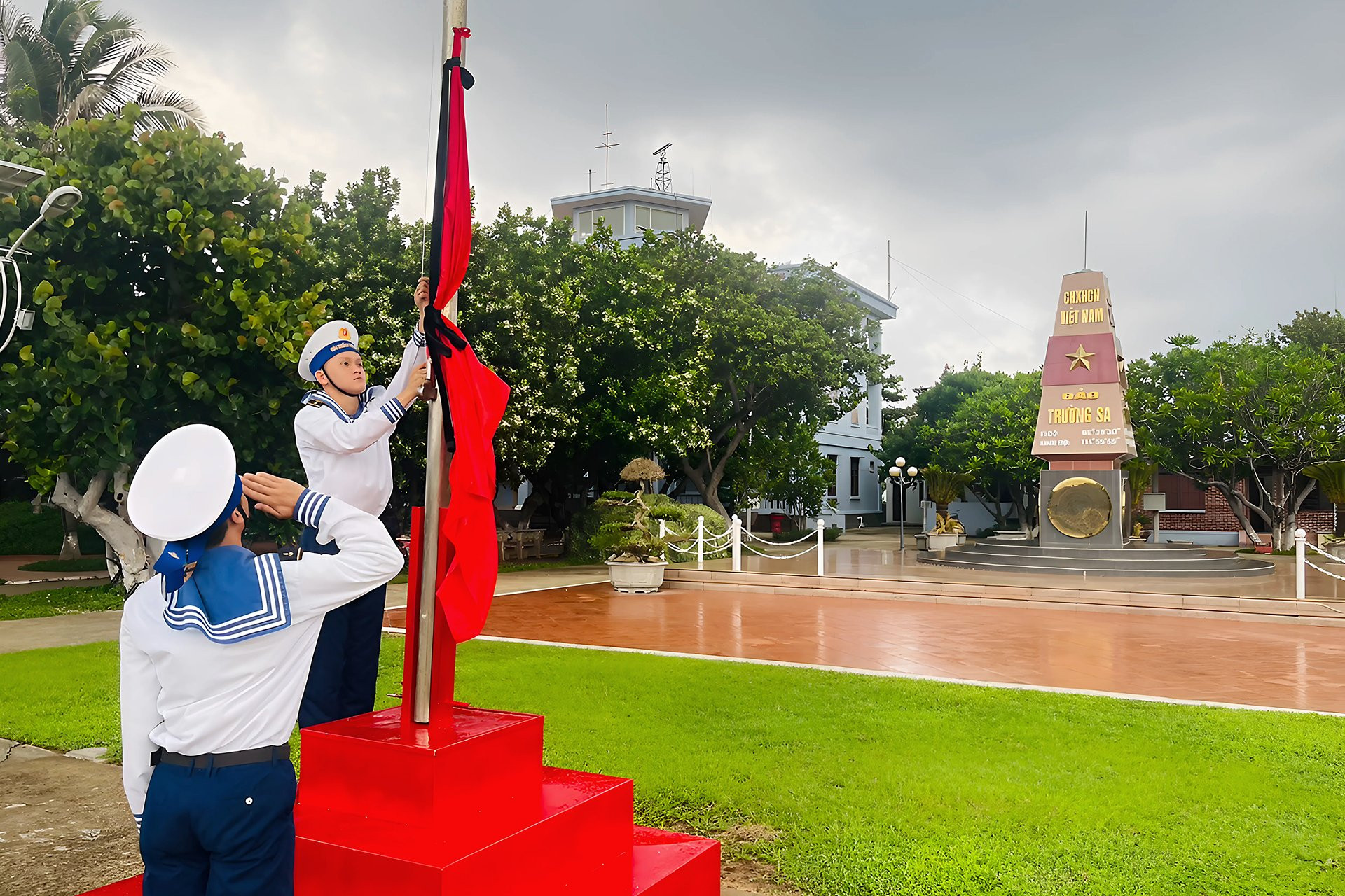 Cũng vào đúng 6h00, cán bộ, chiến sĩ Hải quân ở các điểm, đảo trên huyện Trường Sa (tỉnh Khánh Hòa) và Nhà giàn DK1 đã làm lễ treo cờ rủ và tổ chức Lễ viếng Tổng Bí thư Nguyễn Phú Trọng - Bí thư Quân ủy Trung ương.
