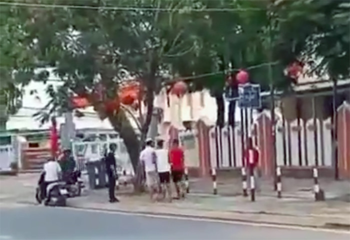Ba người này được yêu cầu cầm theo hung khí vào trụ sở để cán bộ công an lập biên bản, thu giữ. Vụ việc được người dân quay clip tung lên mạng với nội dung không đúng sự việc.