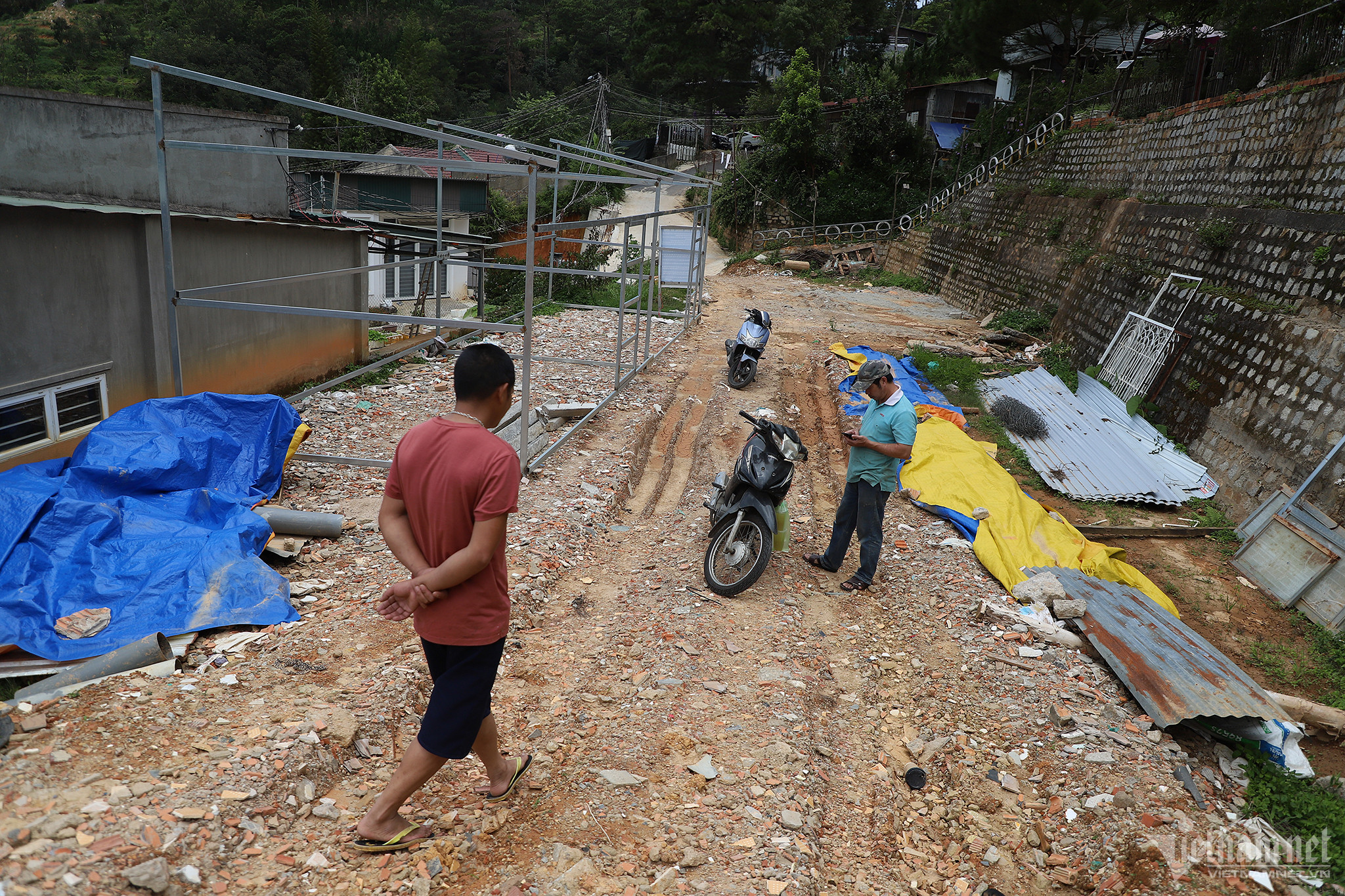 Ghi nhận PV Báo VietNamNet đầu tháng 8/2023, dự án nằm trên cao, dưới là khu dân cư. Công trình đang giai đoạn đào đất, làm đường nội bộ; xây kè và đào khoảng 8.000m3 đất (trong tổng số 16.923m3 đất).