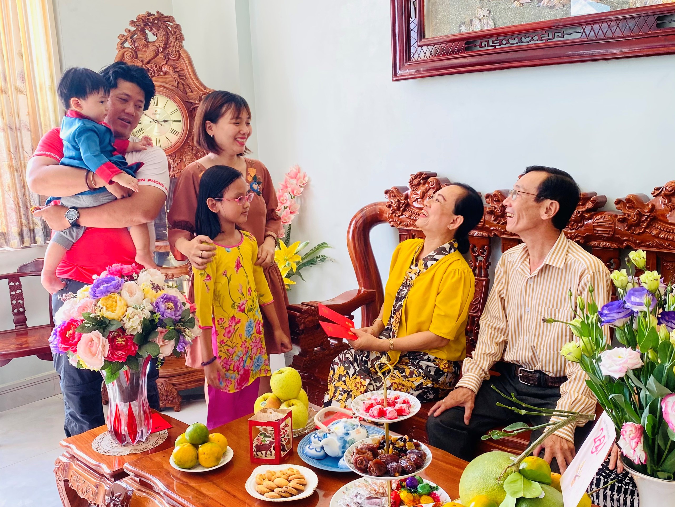 Chị Phương - anh Đạo thường xuyên ghé thăm cha mẹ. |