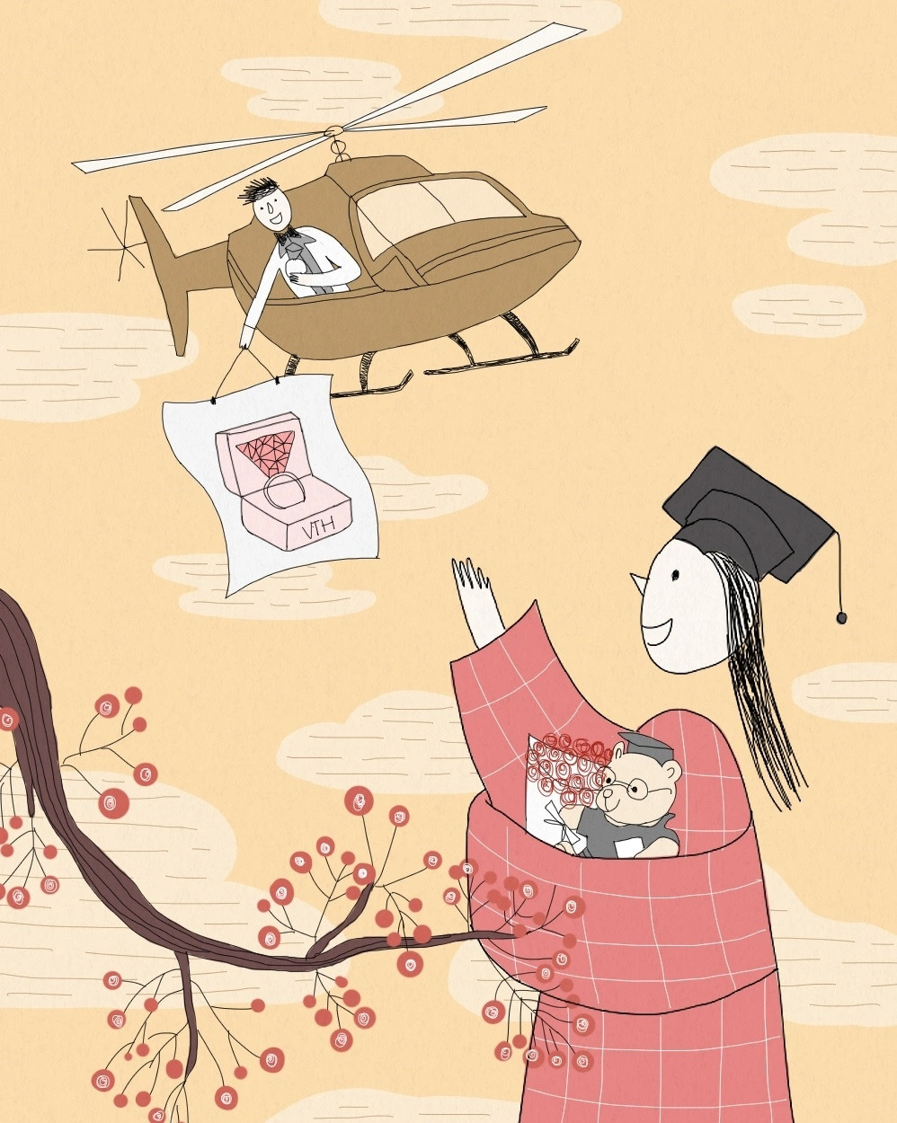 Trước ngày tốt nghiệp đại học, tôi háo hức nhắn tin cho anh nhưng anh lờ đi và không gửi lời chúc mừng như mọi lần. Ngày nhận bằng, tôi ngỡ ngàng khi thấy anh đứng dưới hội trường, mang theo bó hoa hồng rực rỡ cùng chiếc nhẫn cầu hôn.